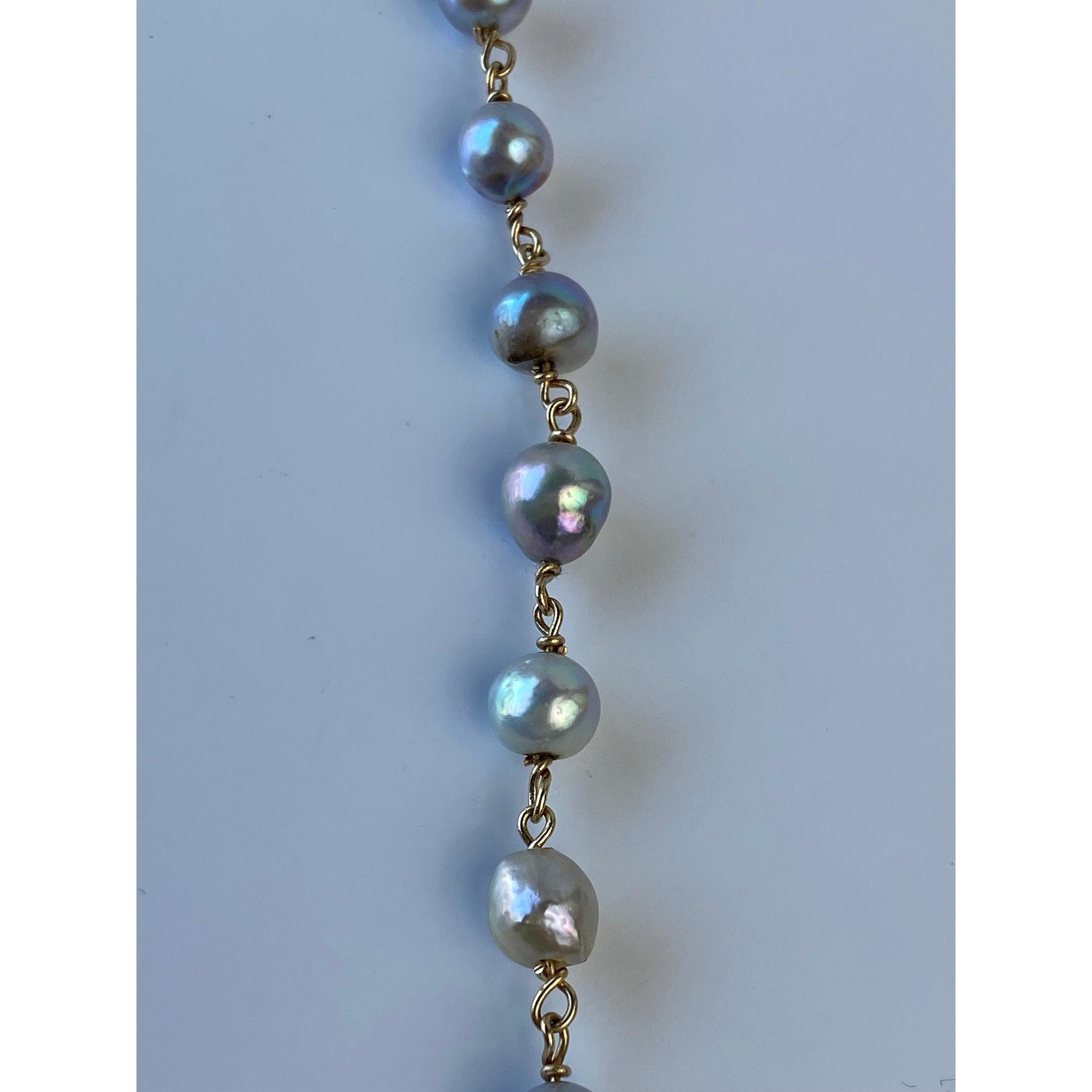 Vintage Solid 14k Yellow Gold Light Blue Pearl Link Bracelet - 7.25 inches