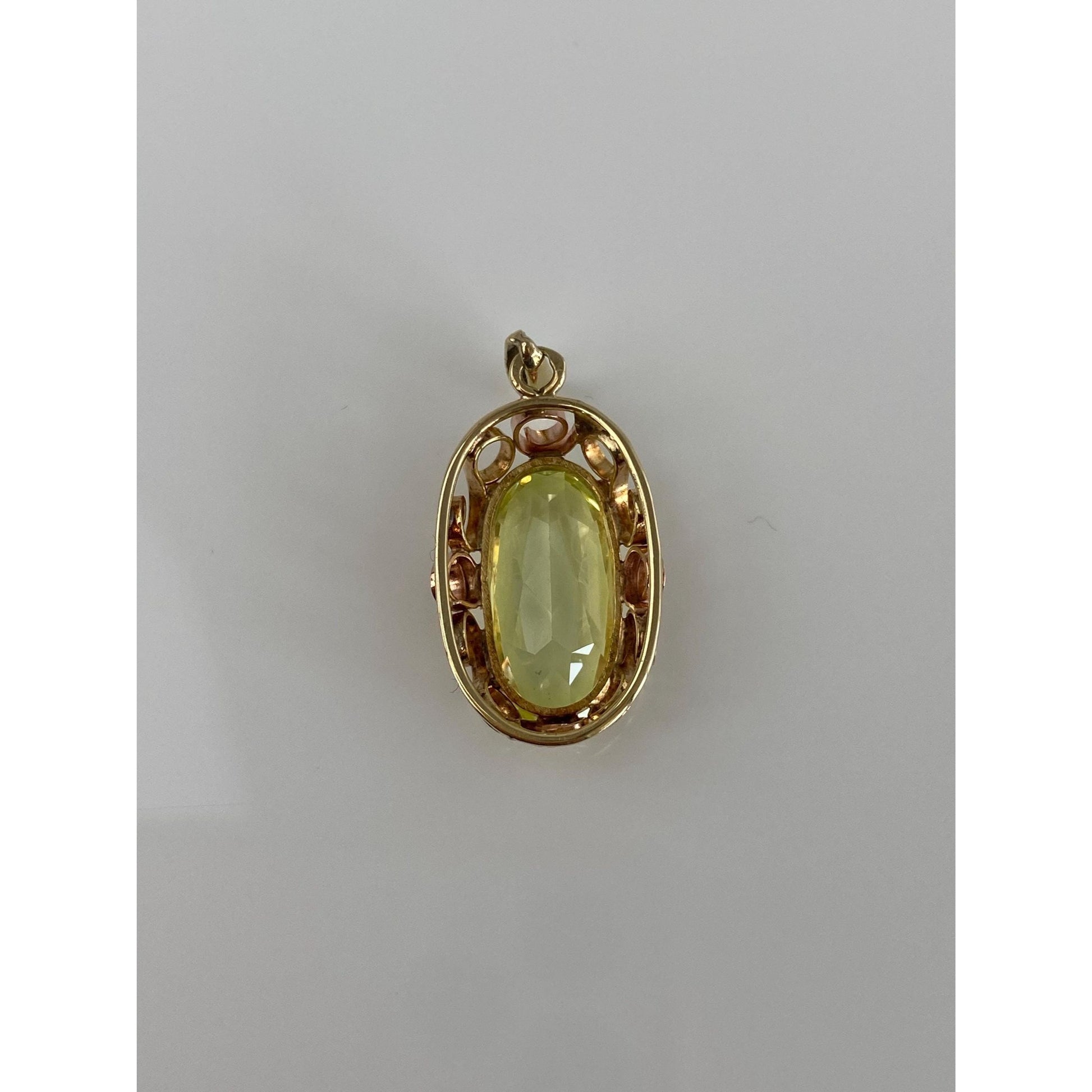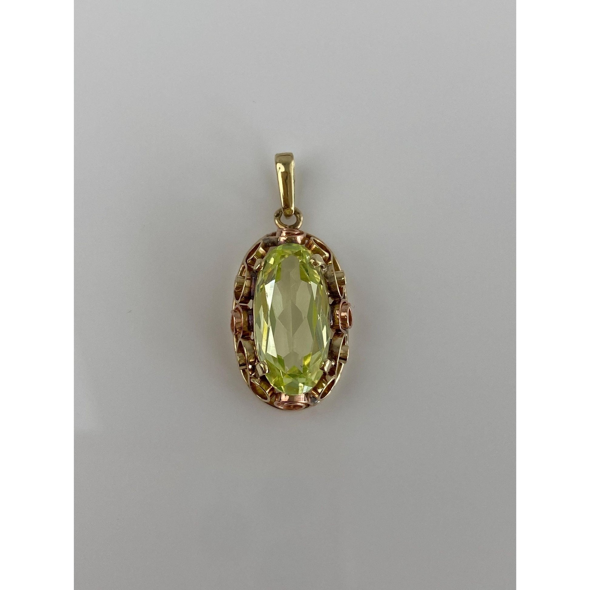 Vintage Solid 14k Yellow Gold Light Green Spinel Charm