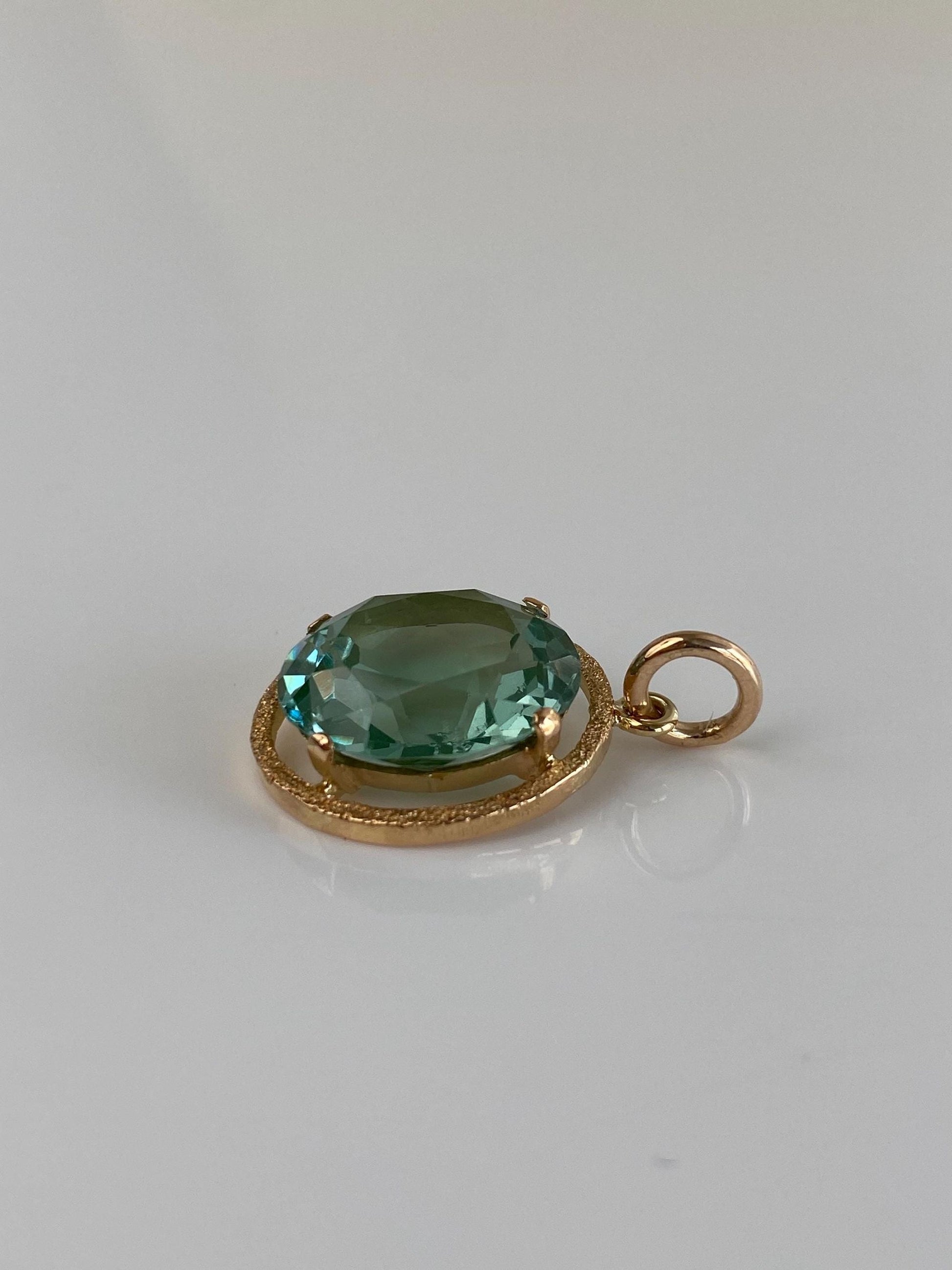 Vintage Solid 14k Yellow Gold Light Green Spinel Charm