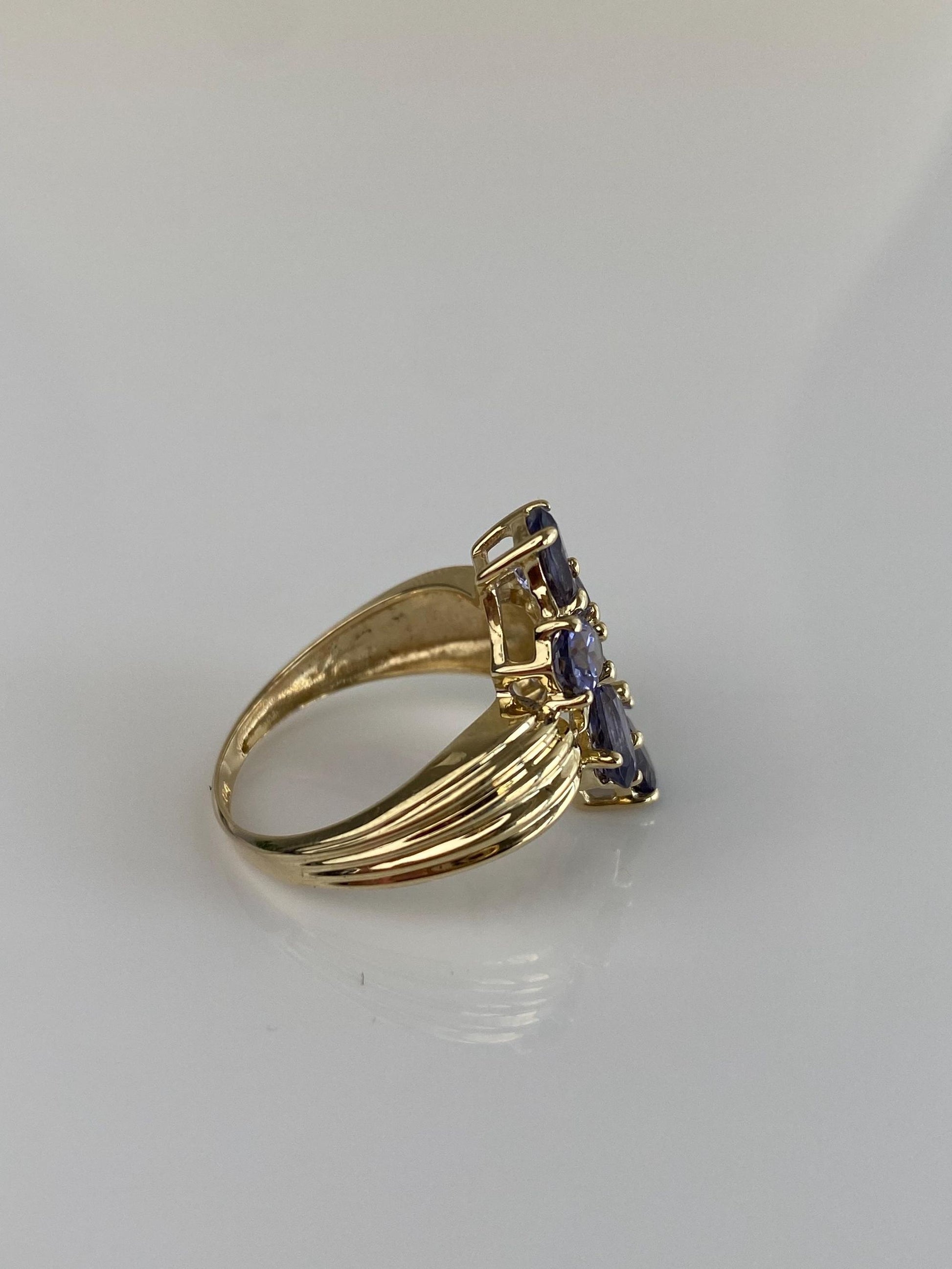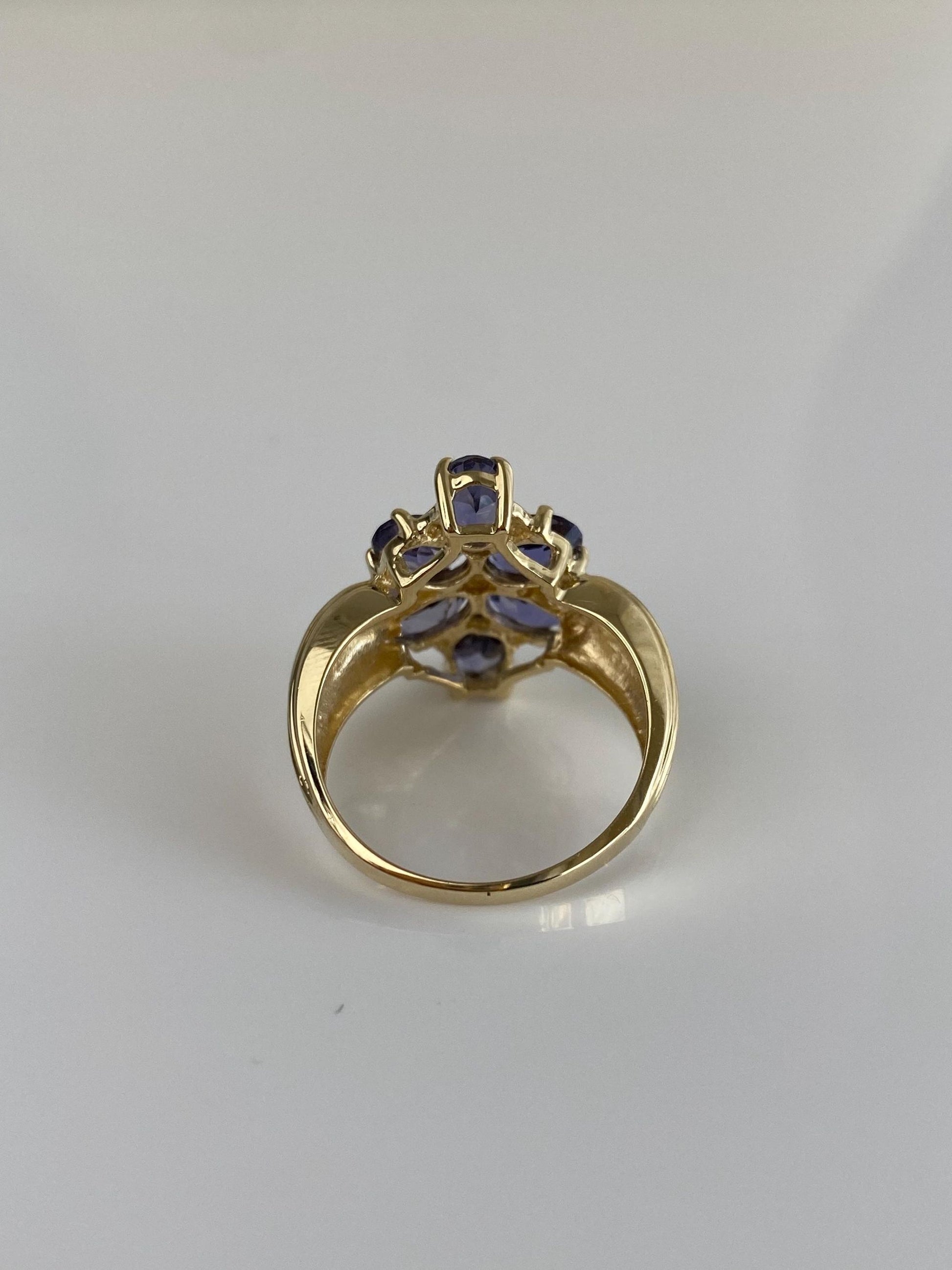 Vintage Solid 14k Yellow Gold Lilac Cubic Zirconia Cluster Ring - Size 6.75