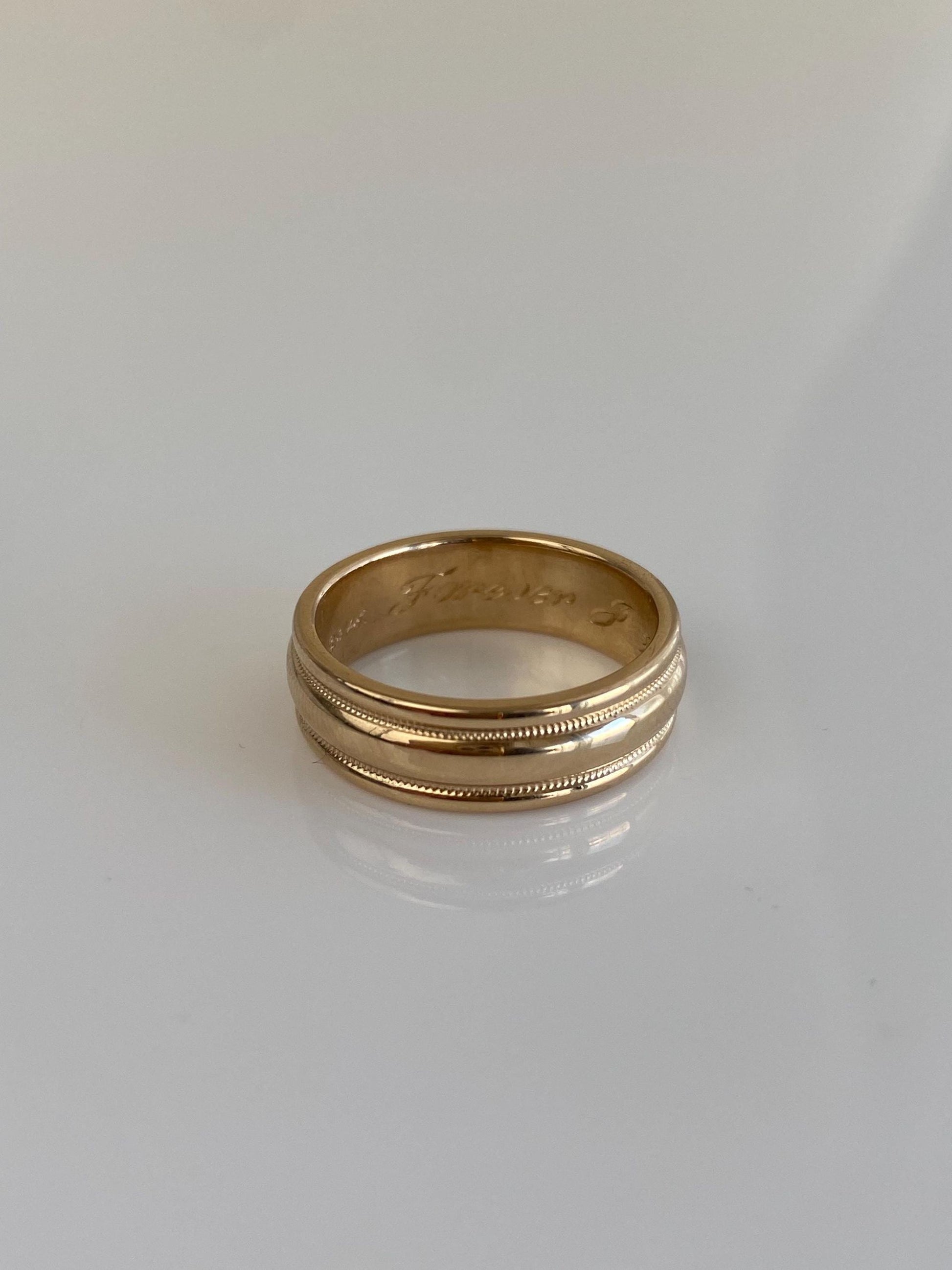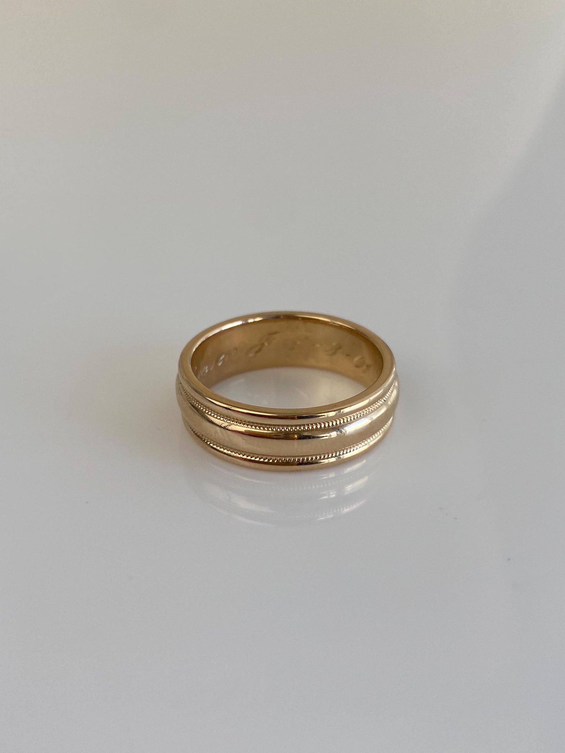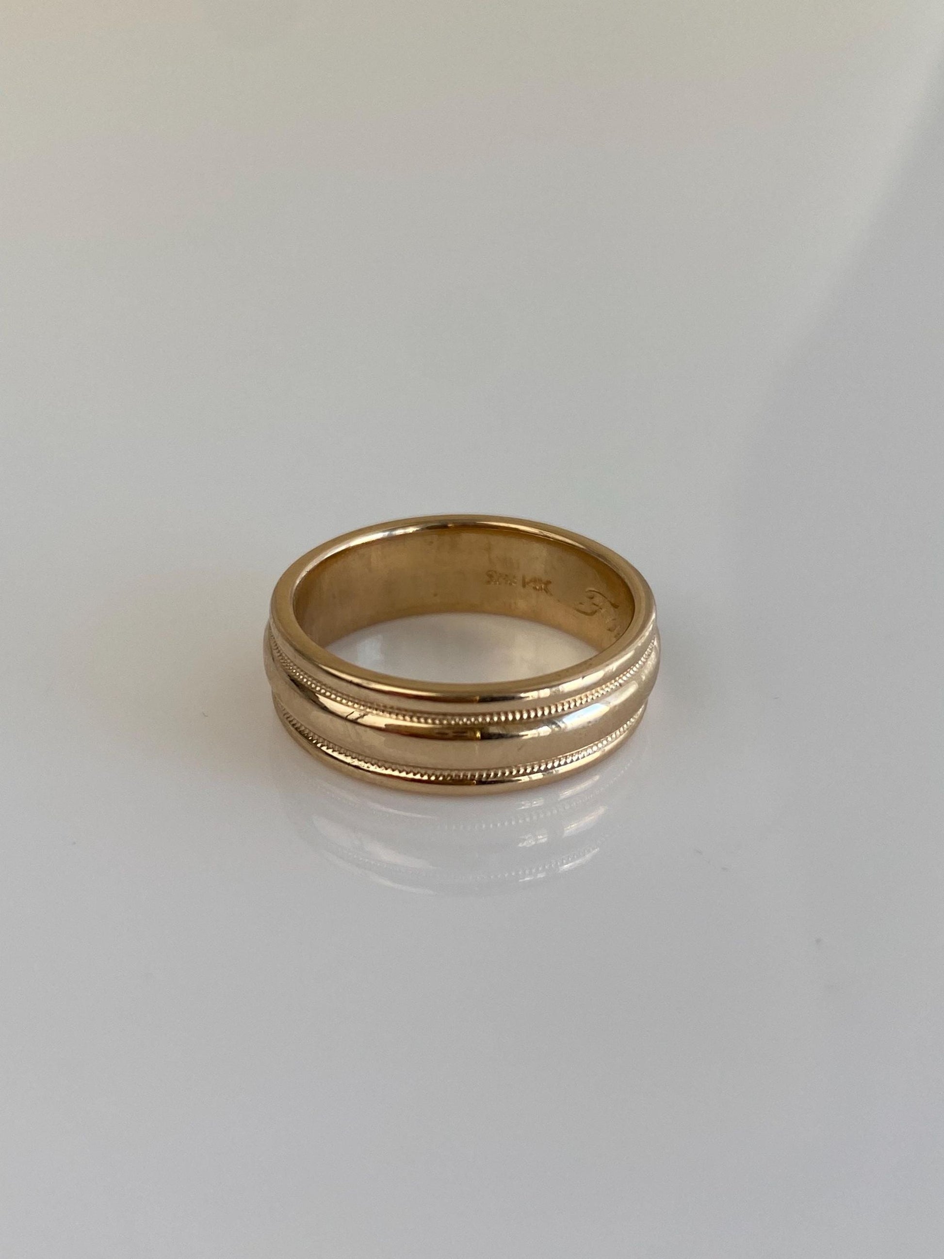 Vintage Solid 14k Yellow Gold Lined Miligrain Ring Band - Size 6.25