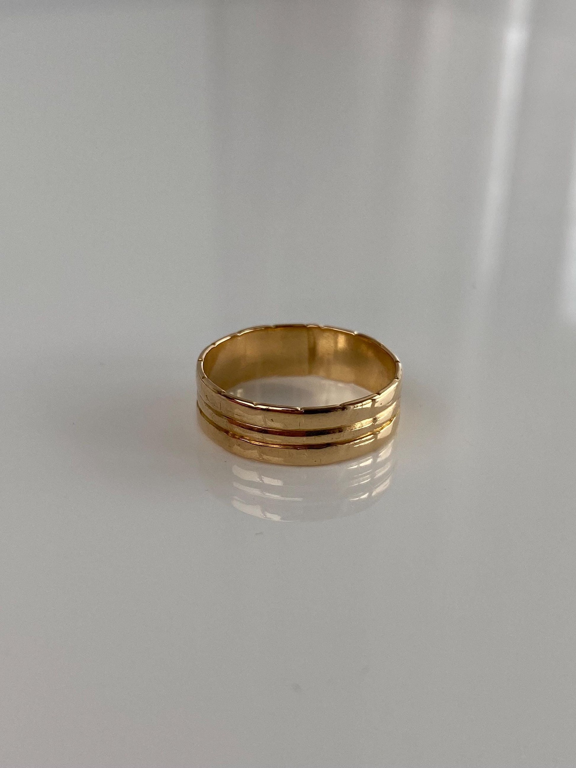 Vintage Solid 14k Yellow Gold Lined Ring Band - Size 6.5