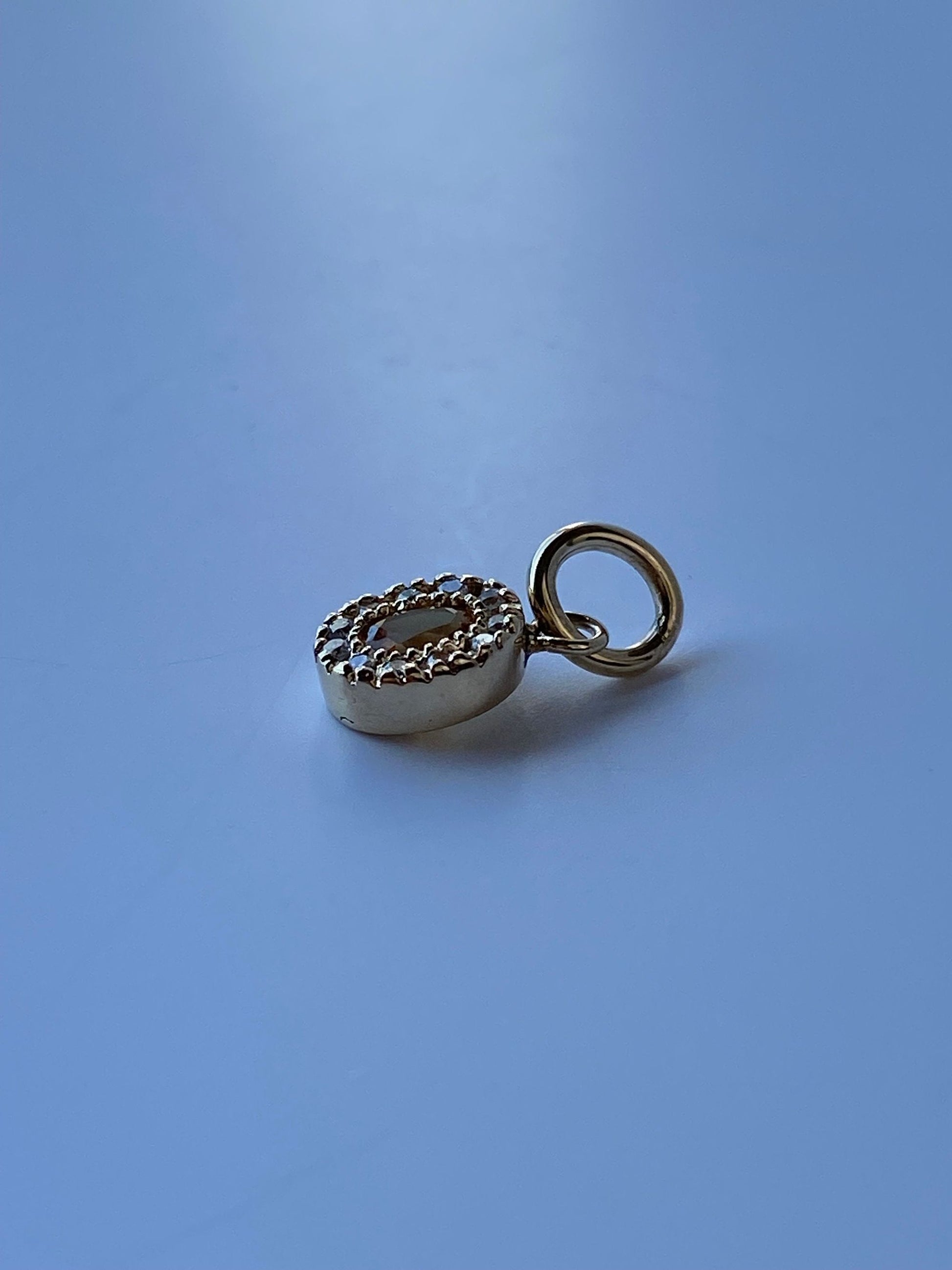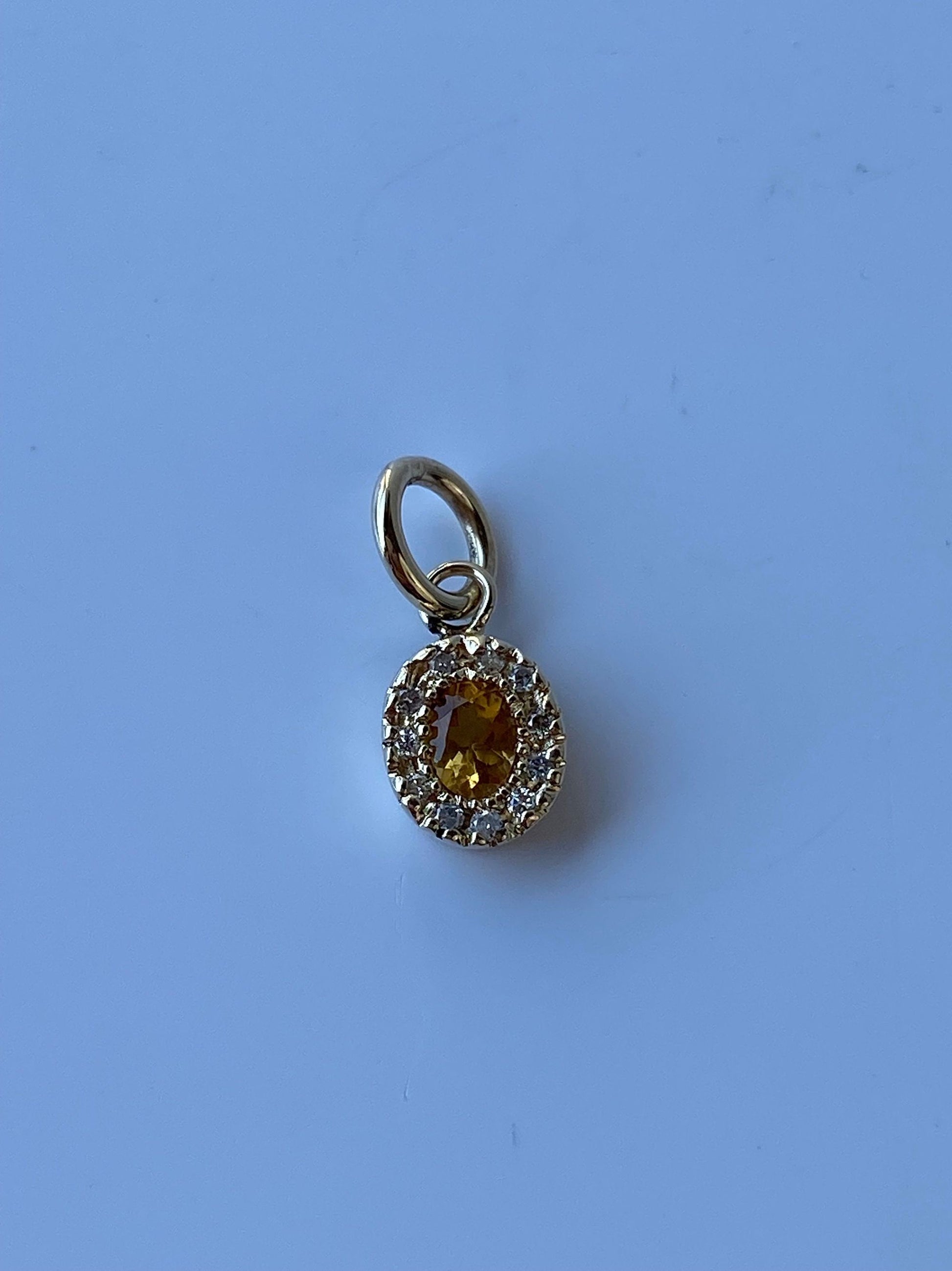 Vintage Solid 14k Yellow Gold Little Citrine & Diamond Charm
