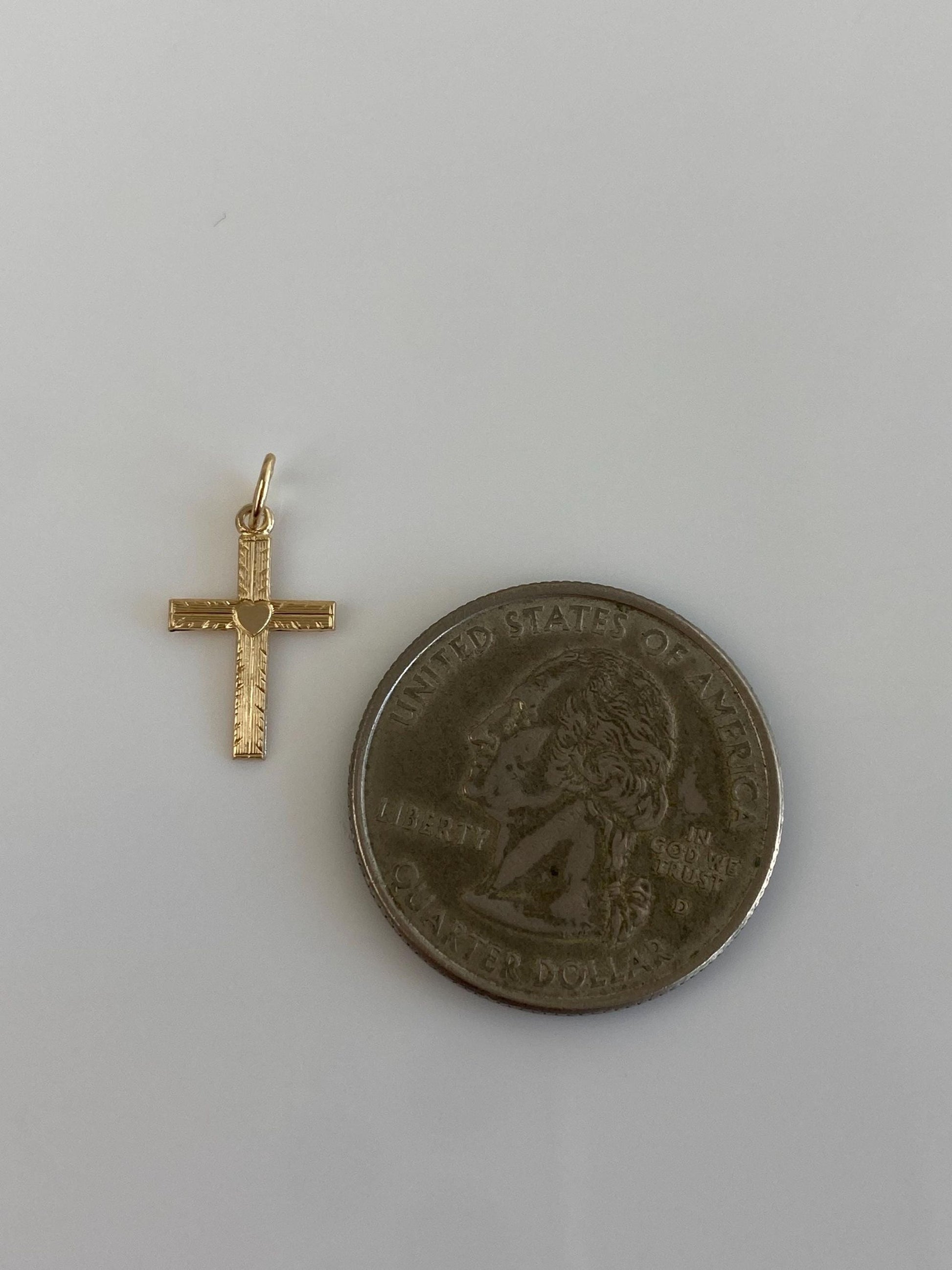 Vintage Solid 14k Yellow Gold Little Heart Cross Charm