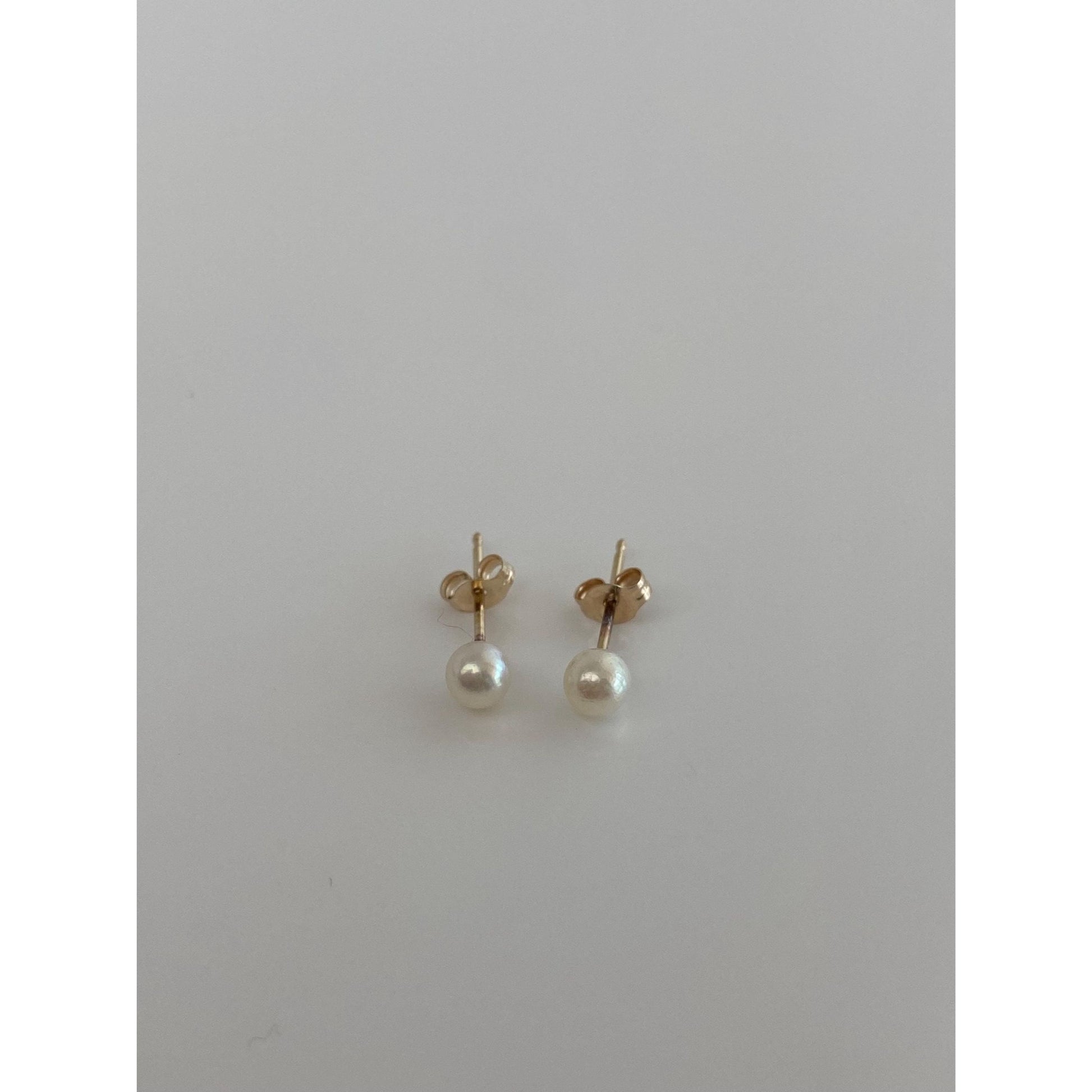 Vintage Solid 14k Yellow Gold Little Pearl Stud Earrings