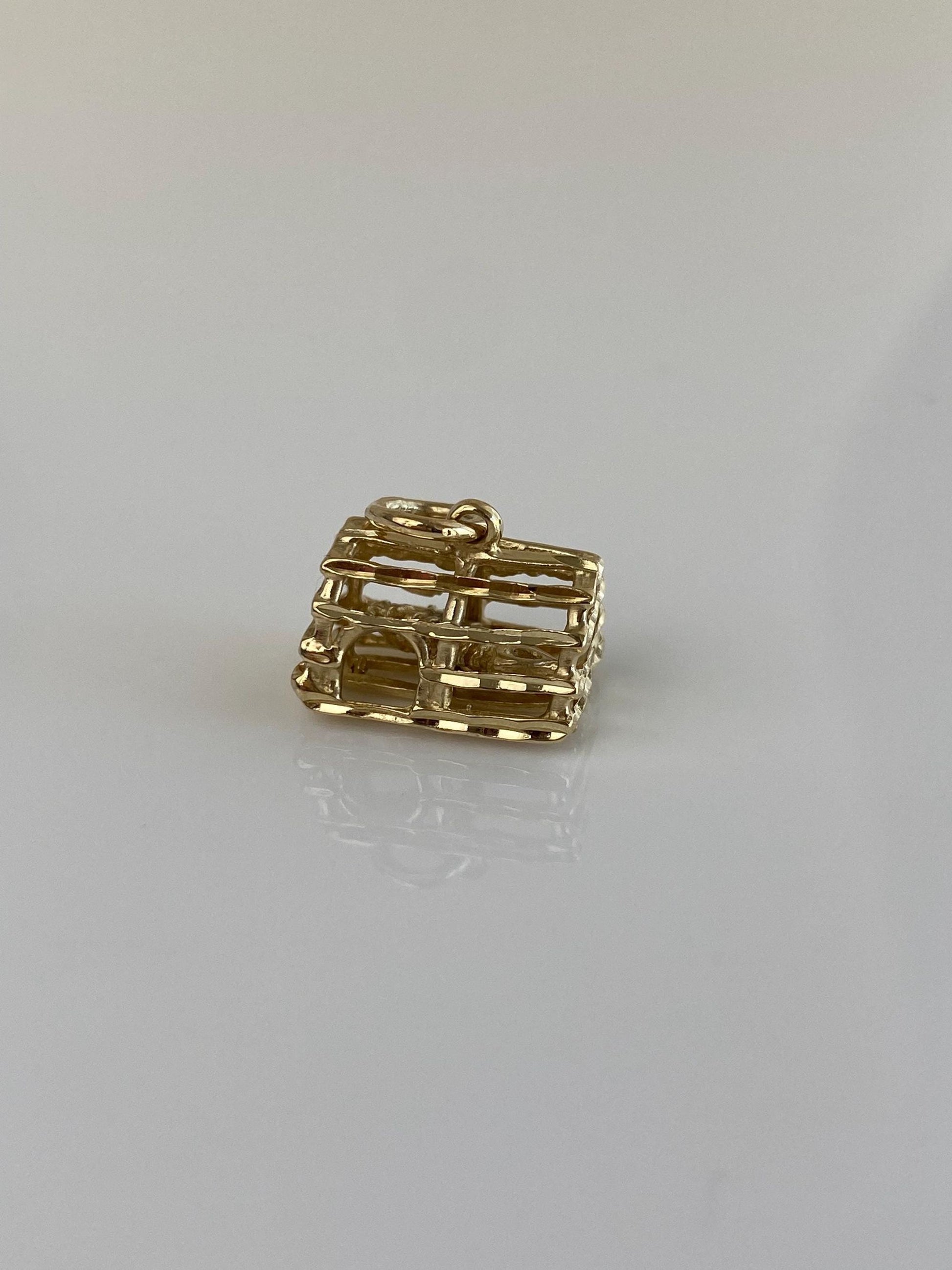 Vintage Solid 14k Yellow Gold Lobster Trap Charm
