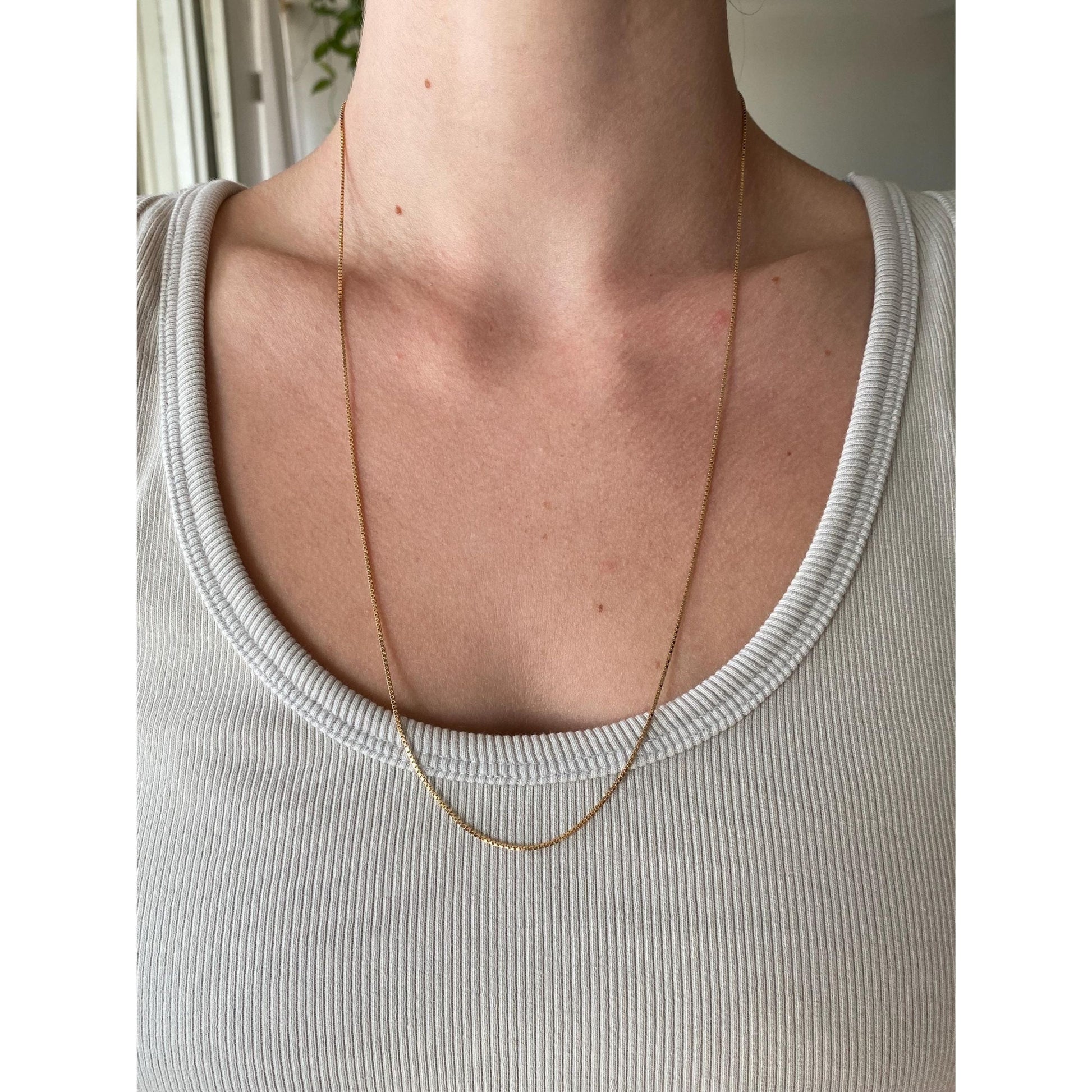Vintage Solid 14k Yellow Gold Long Box Chain Necklace - 24.5 inches