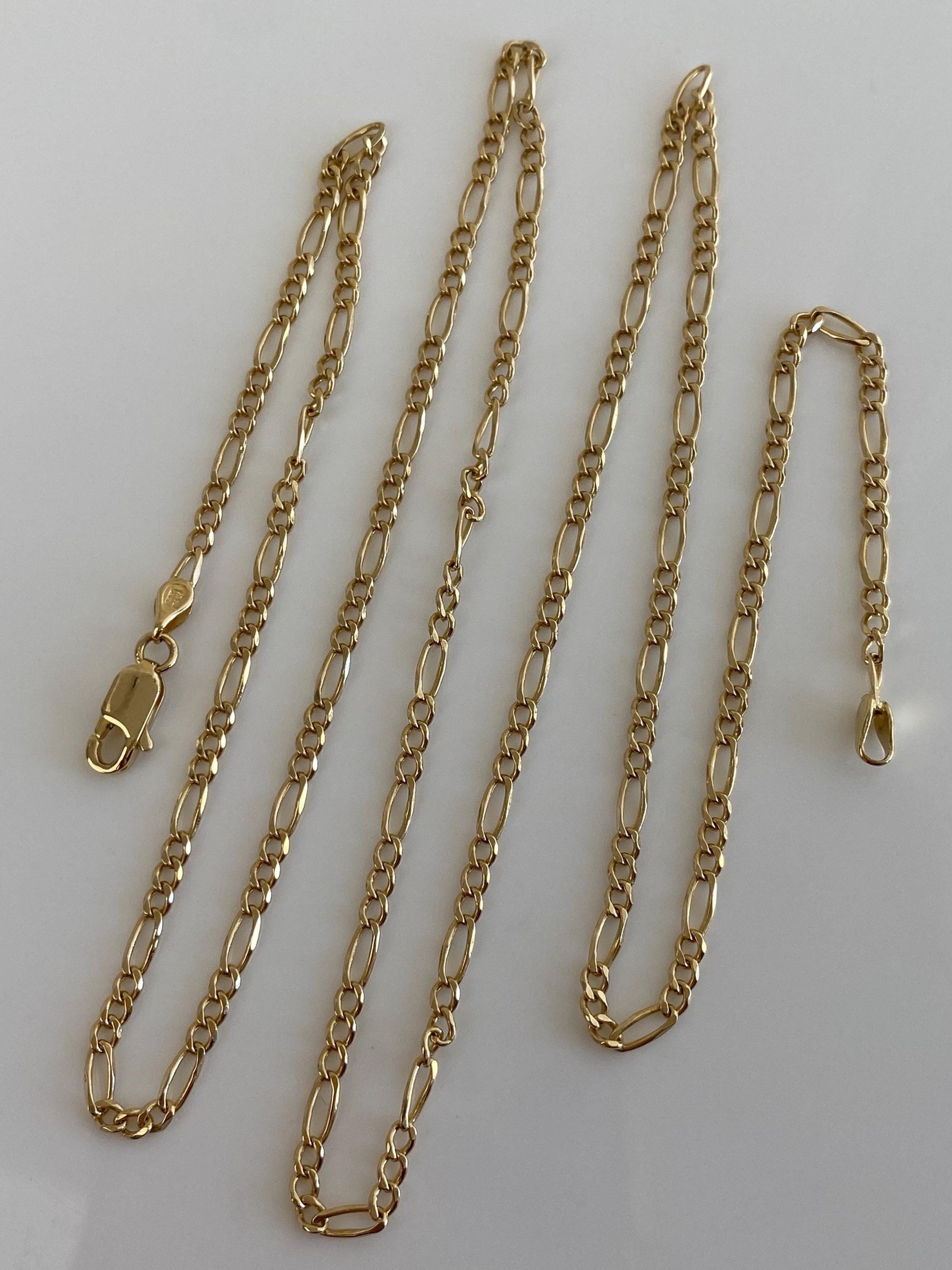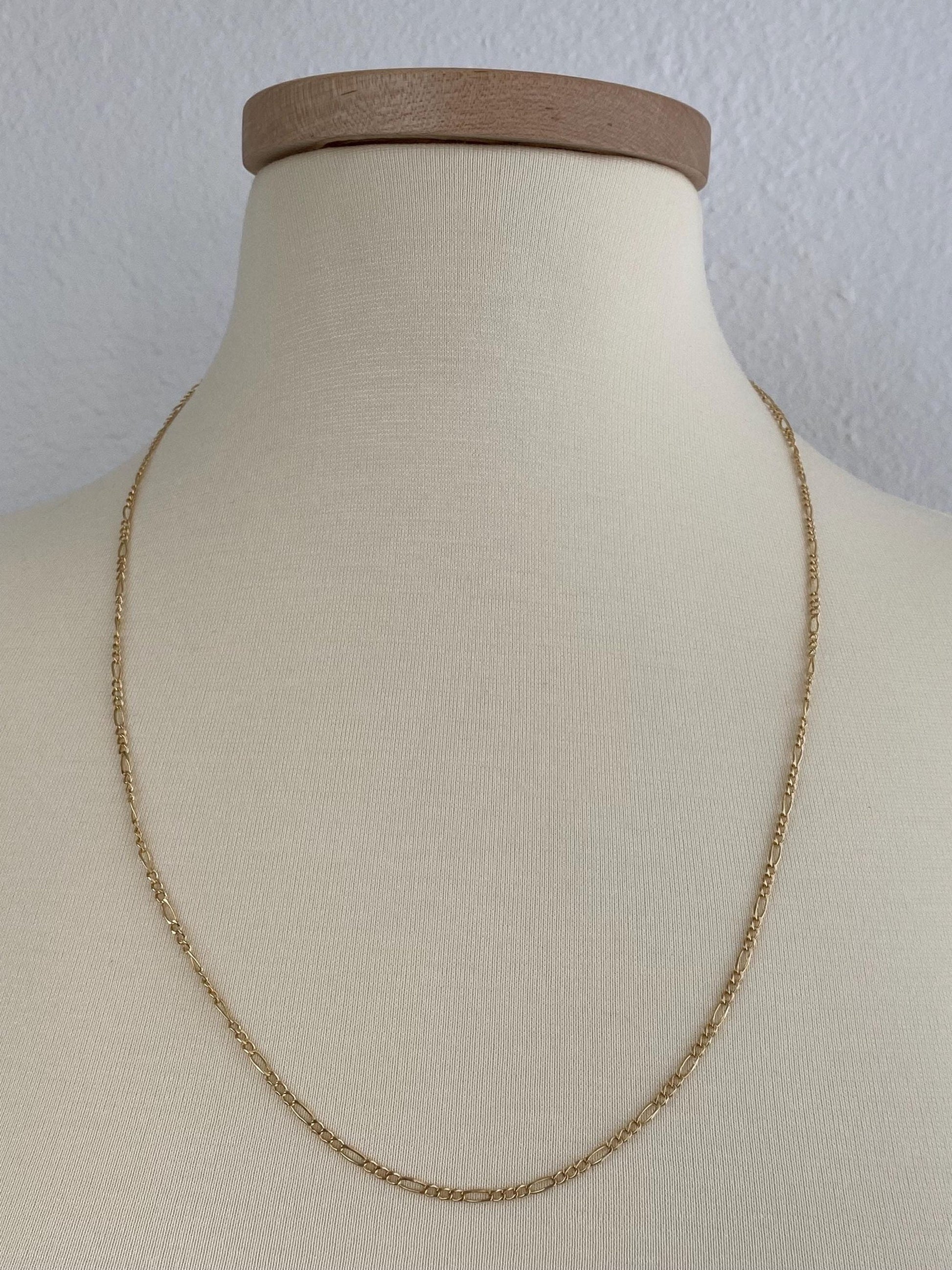 Vintage Solid 14k Yellow Gold Long Dainty Figaro Chain Necklace - 25.25 inches