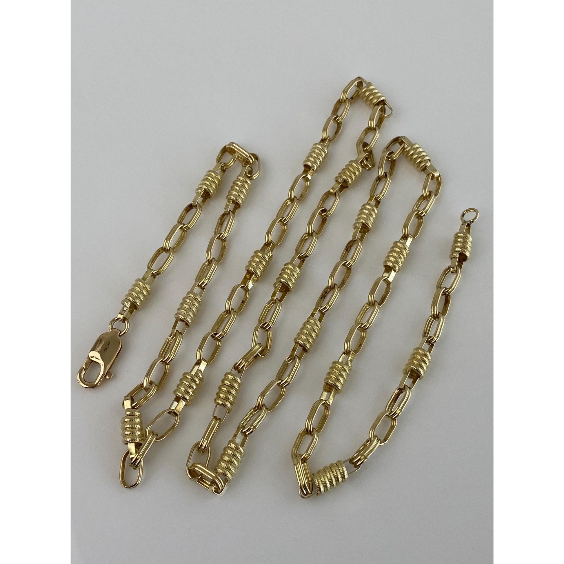 Vintage Solid 14k Yellow Gold Long Fancy Link Chain Necklace - 30.5 inches