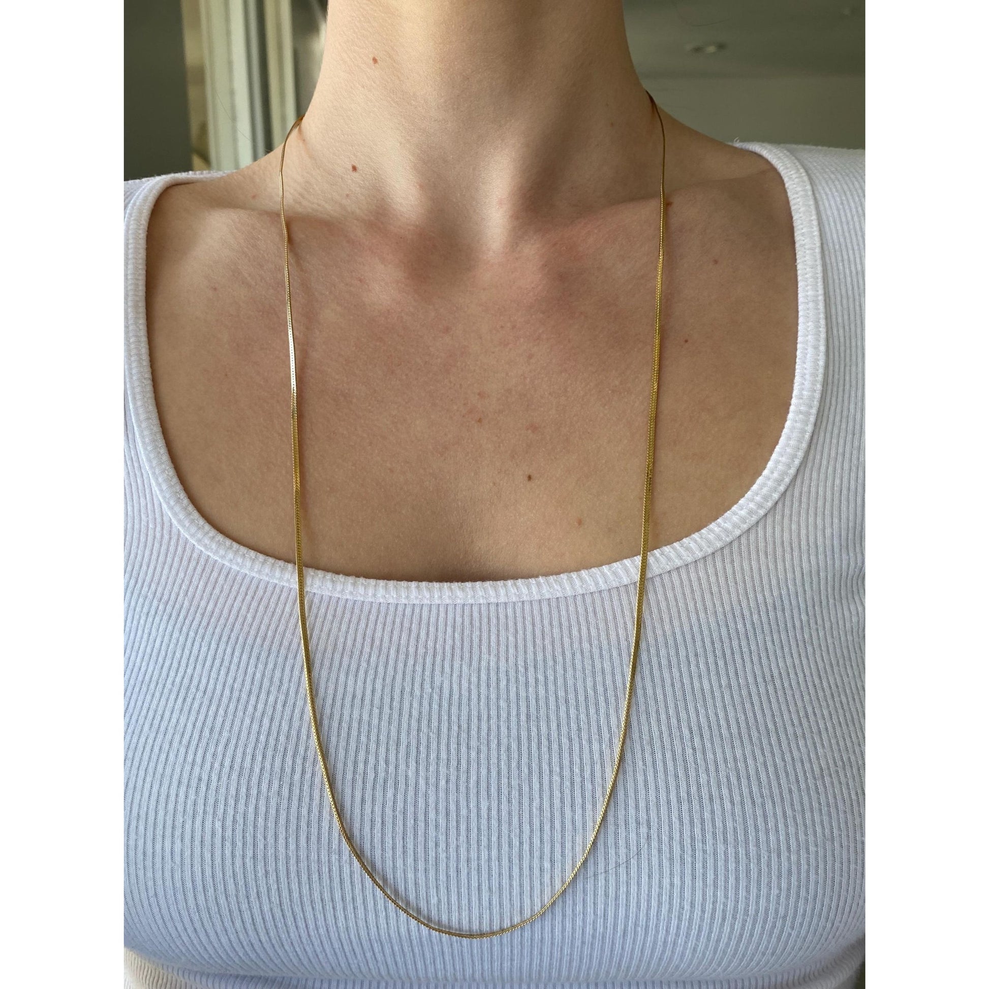 Vintage Solid 14k Yellow Gold Long Flat Wheat Chain Necklace - 29.75 inches