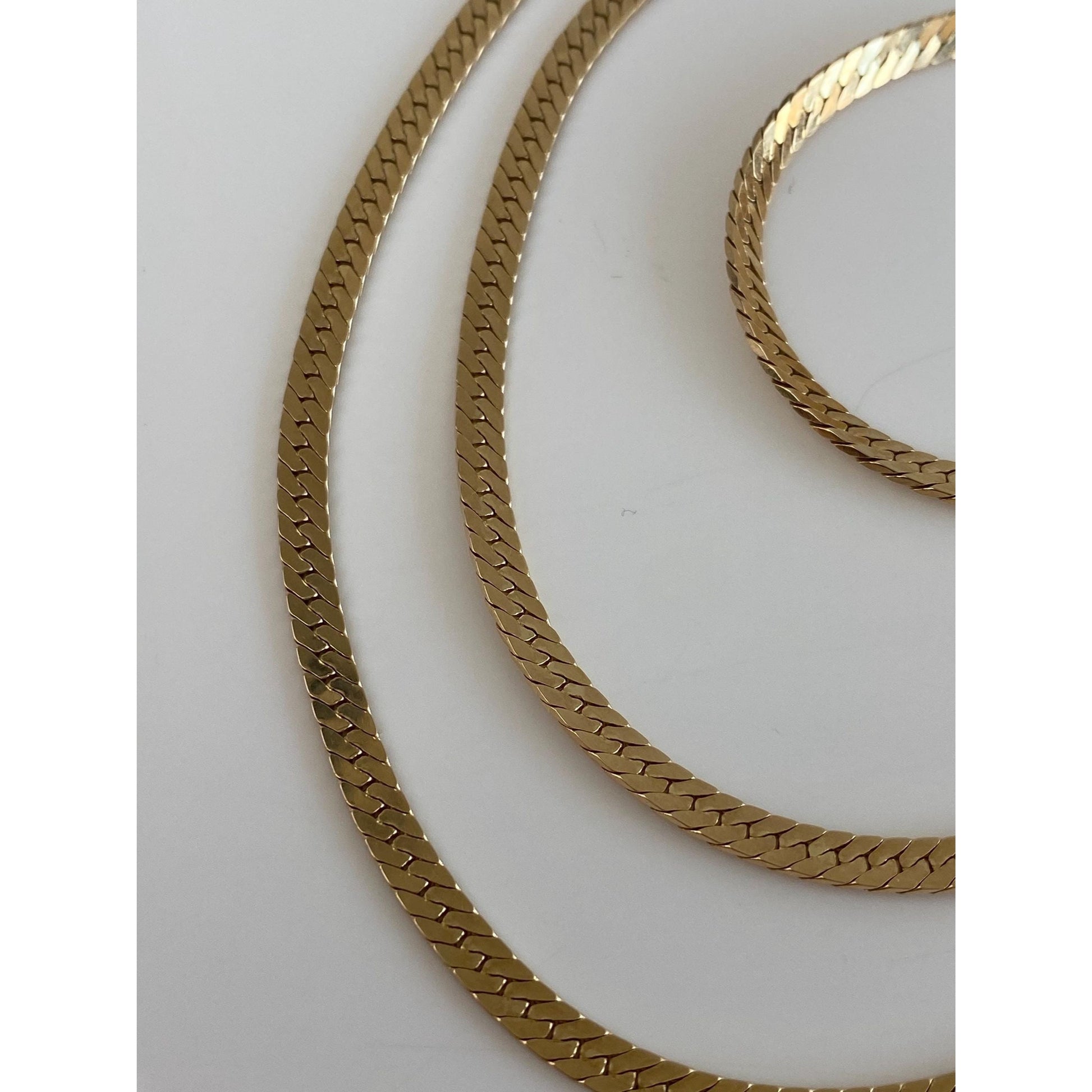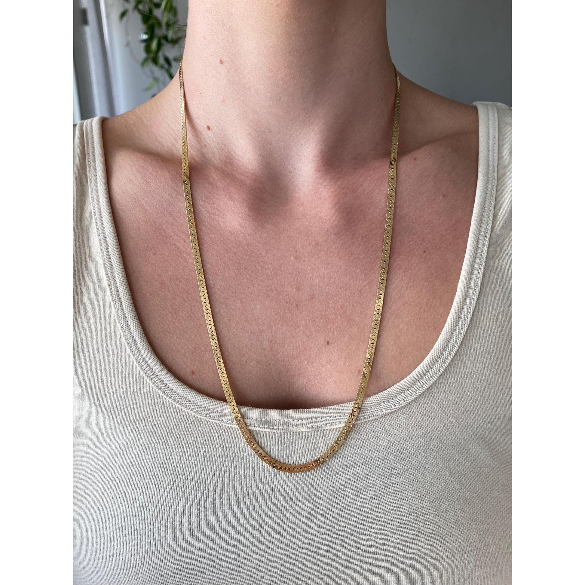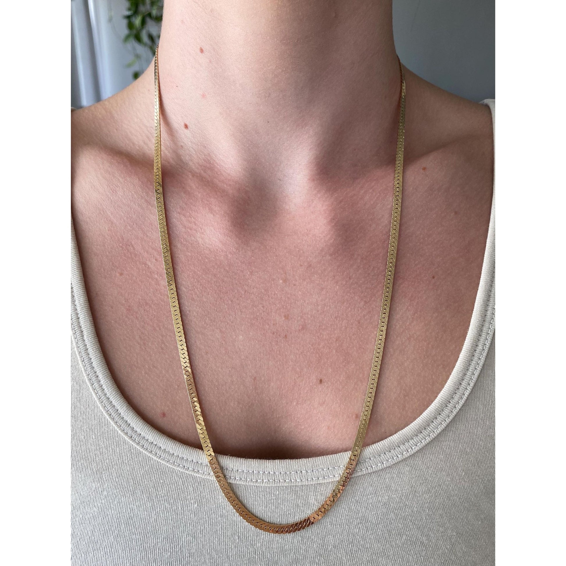 Vintage Solid 14k Yellow Gold Long Herringbone Chain Necklace - 24.25 inches