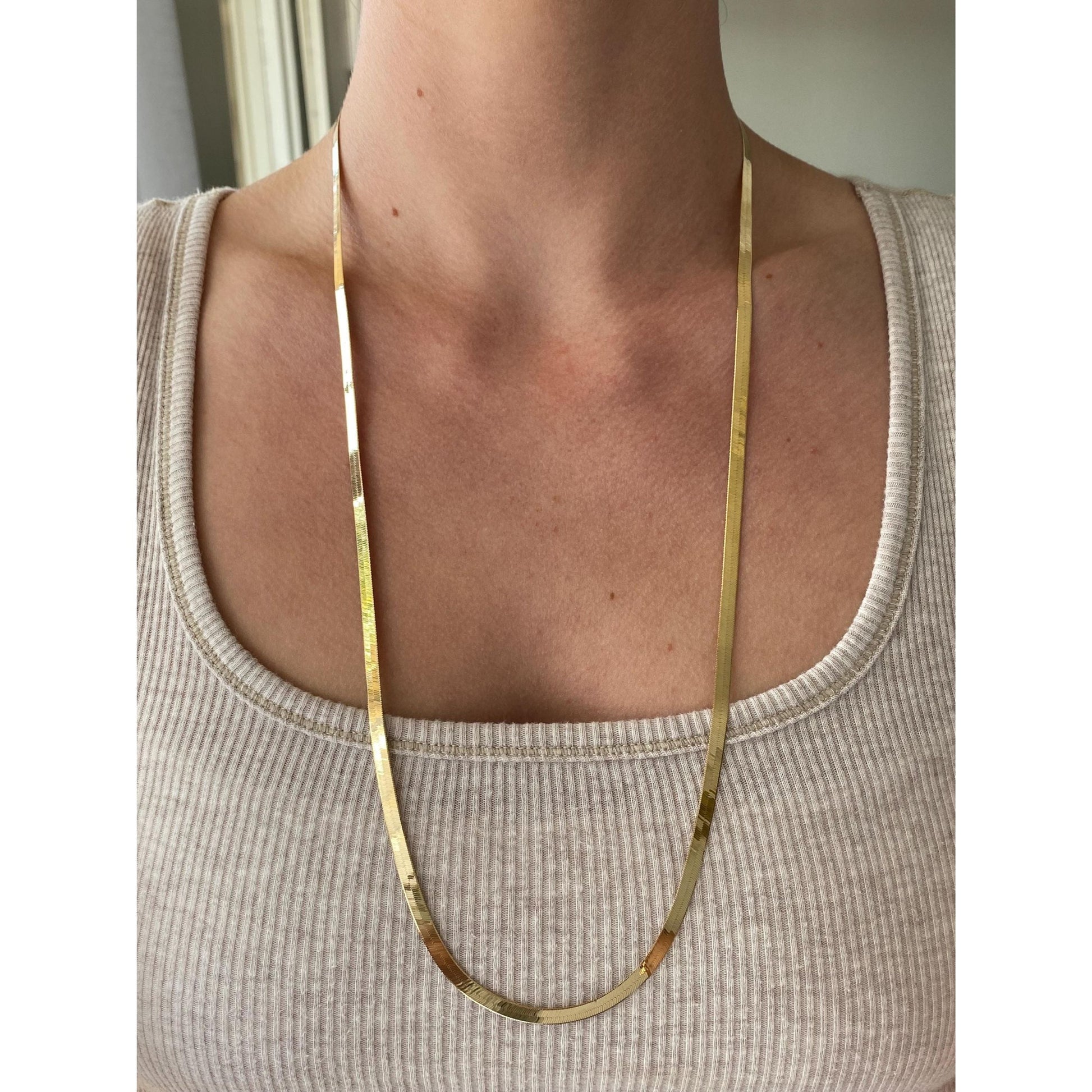 Vintage Solid 14k Yellow Gold Long Herringbone Chain Necklace - 27.75 inches