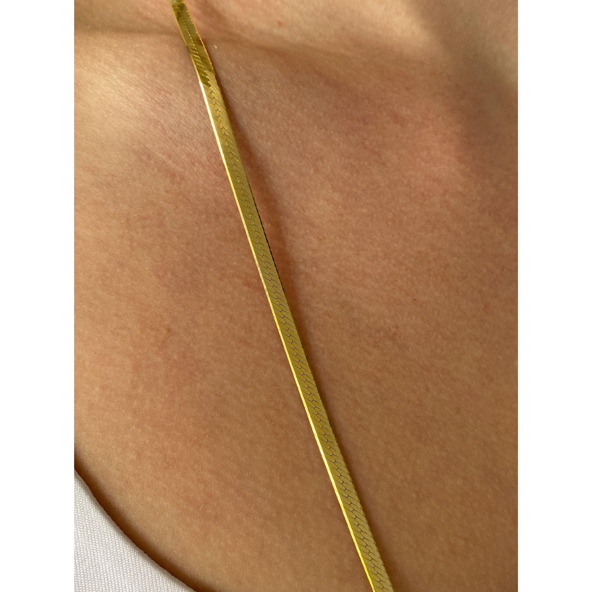 Vintage Solid 14k Yellow Gold Long Herringbone Chain Necklace - 30 inches