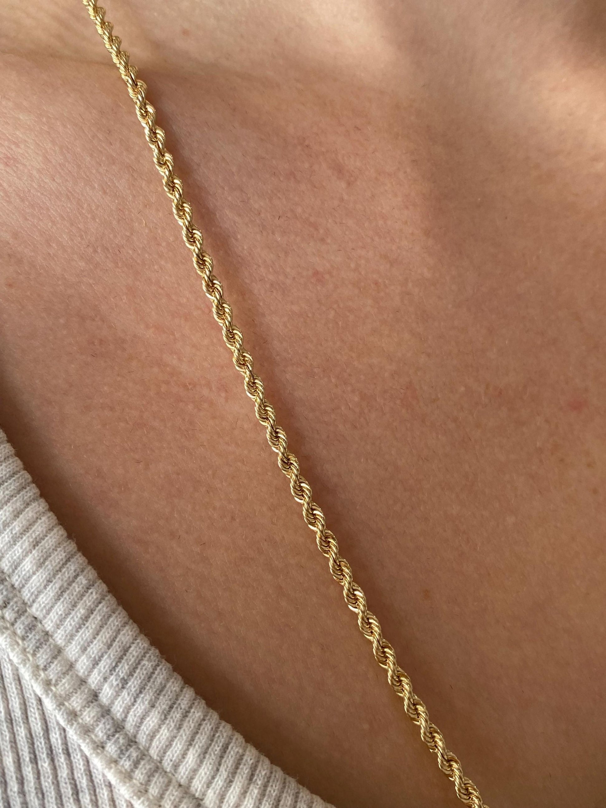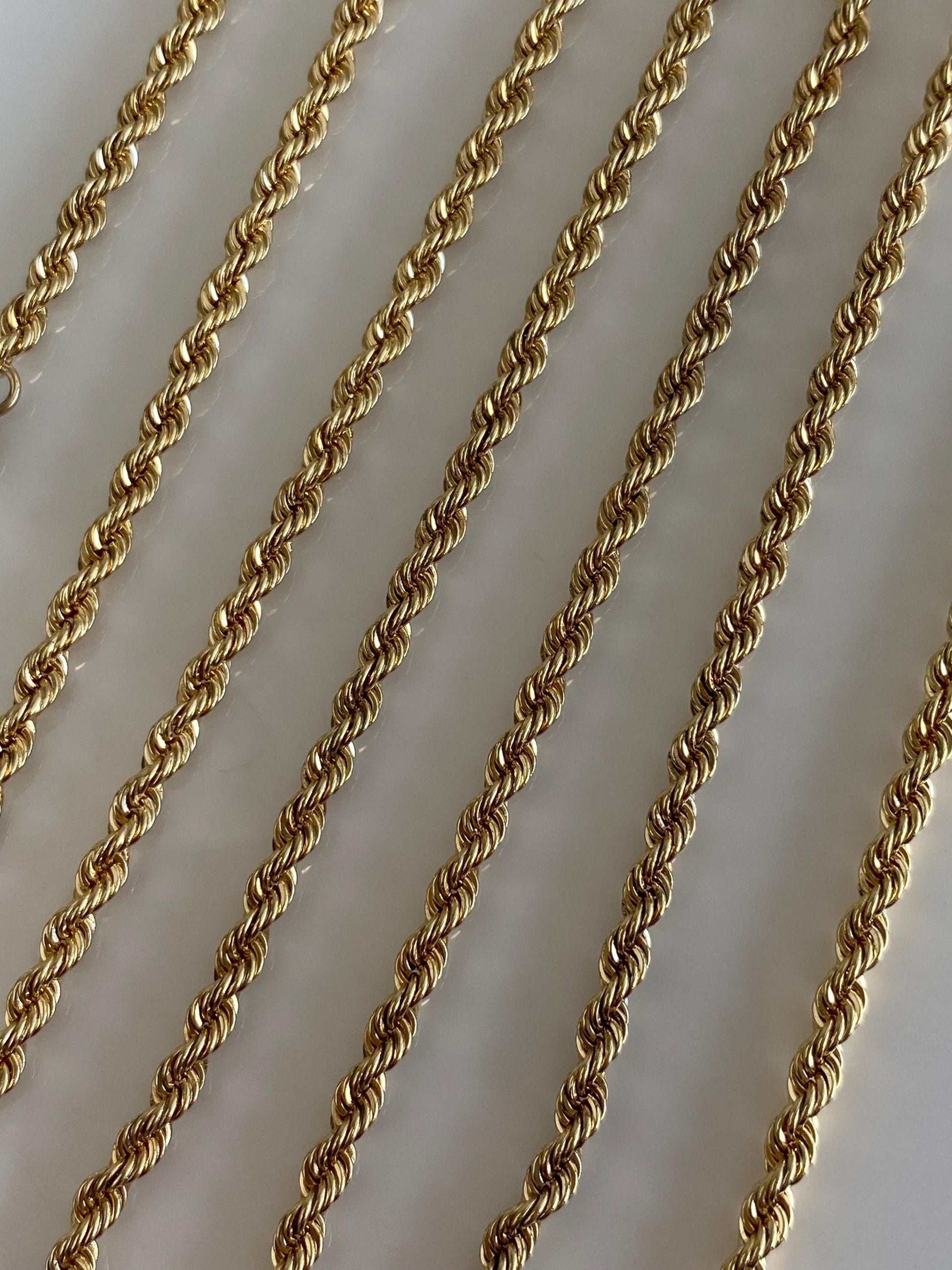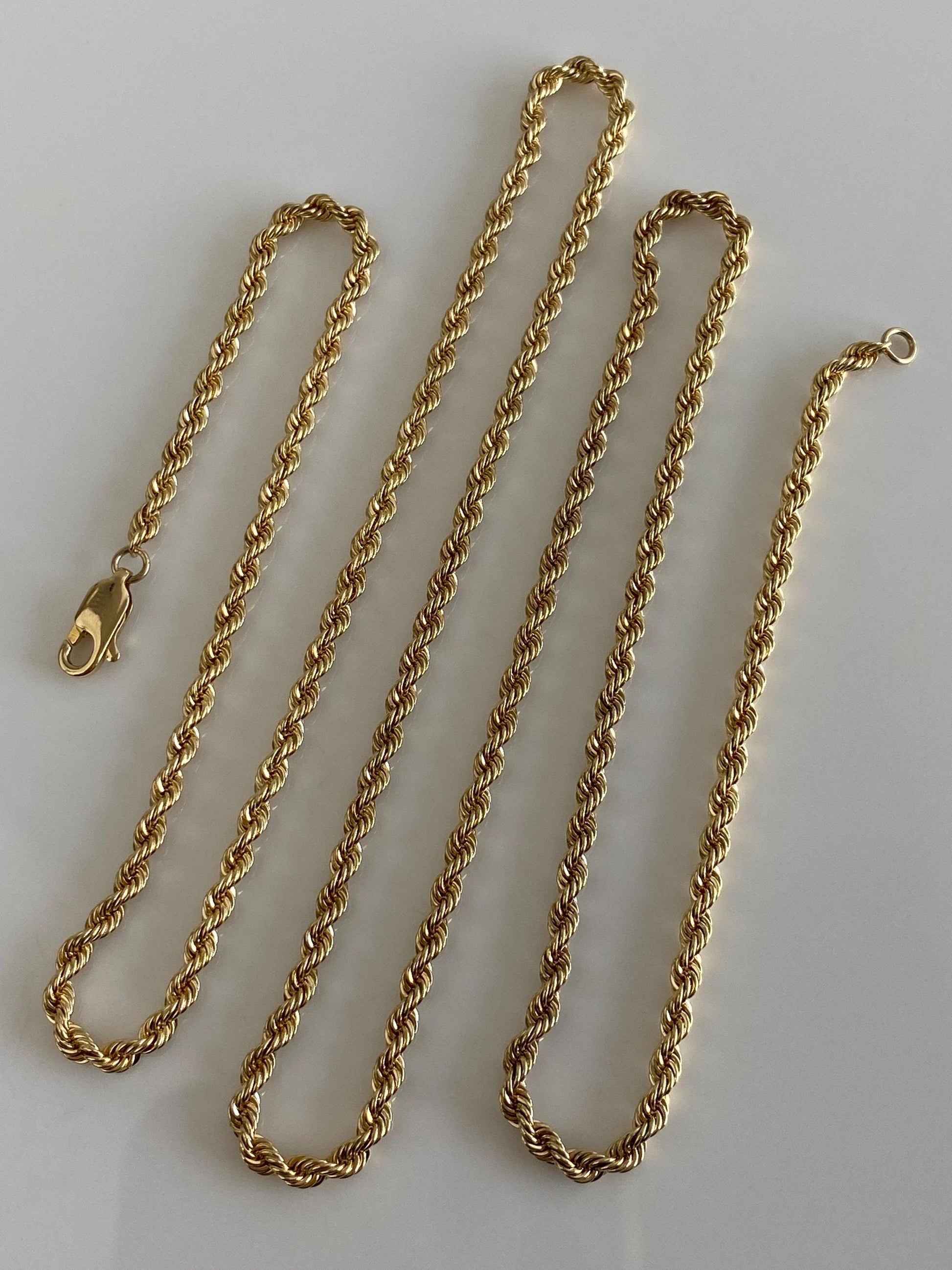 Vintage Solid 14k Yellow Gold Long Rope Chain Necklace - 24 inches