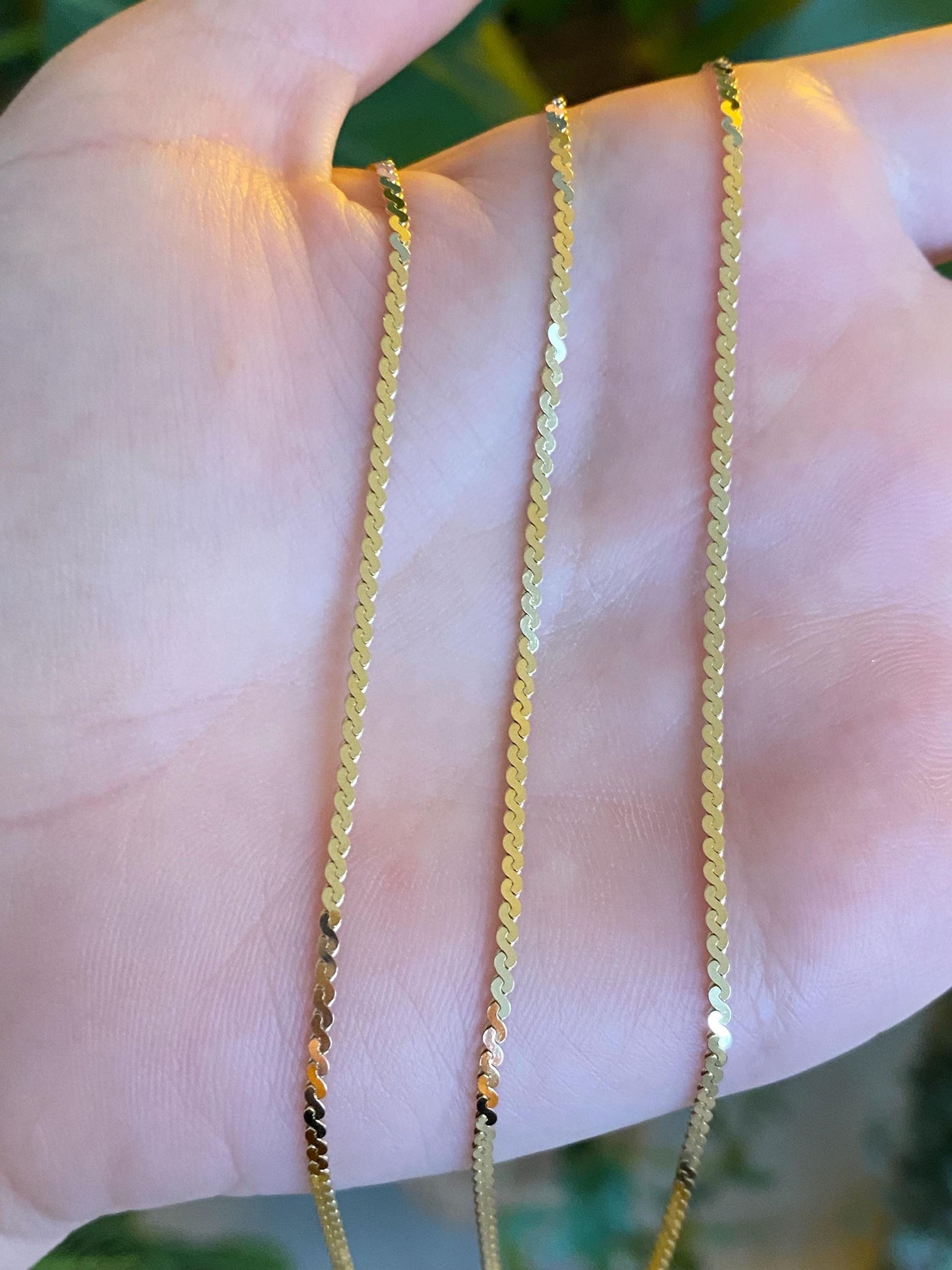 Vintage Solid 14k Yellow Gold Long Serpentine Chain Necklace - 23 inches