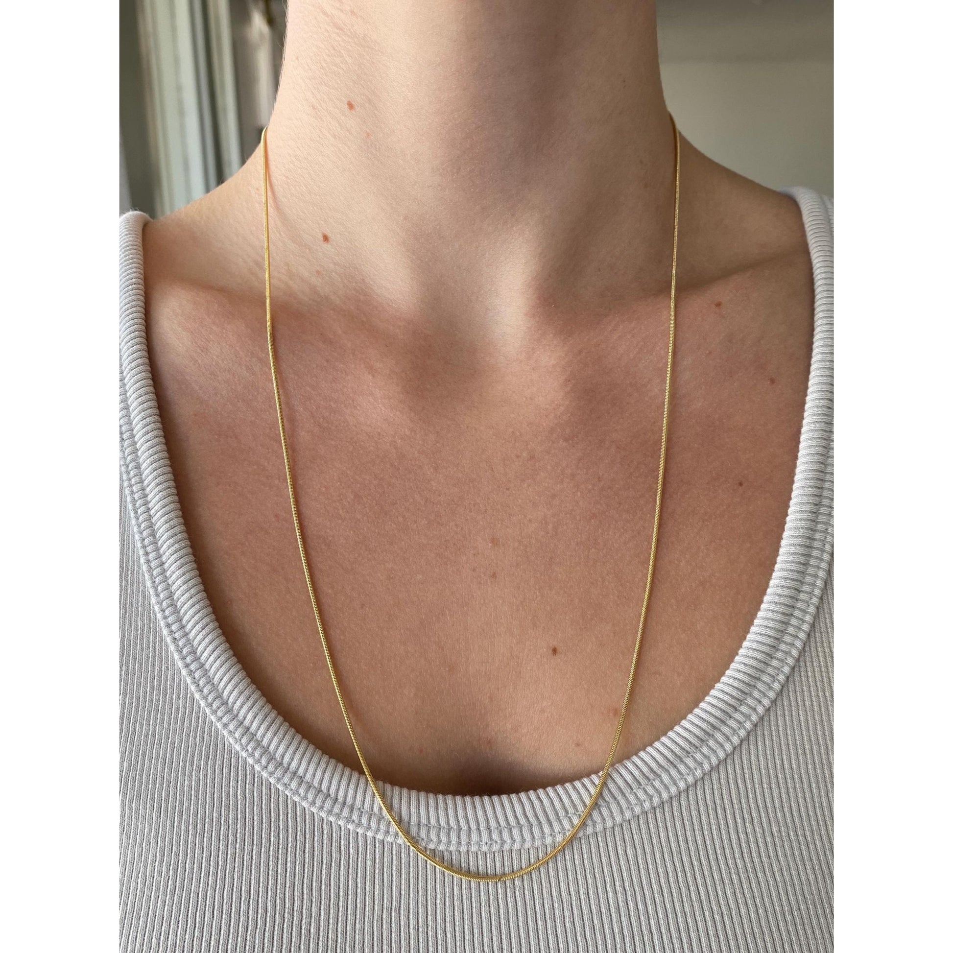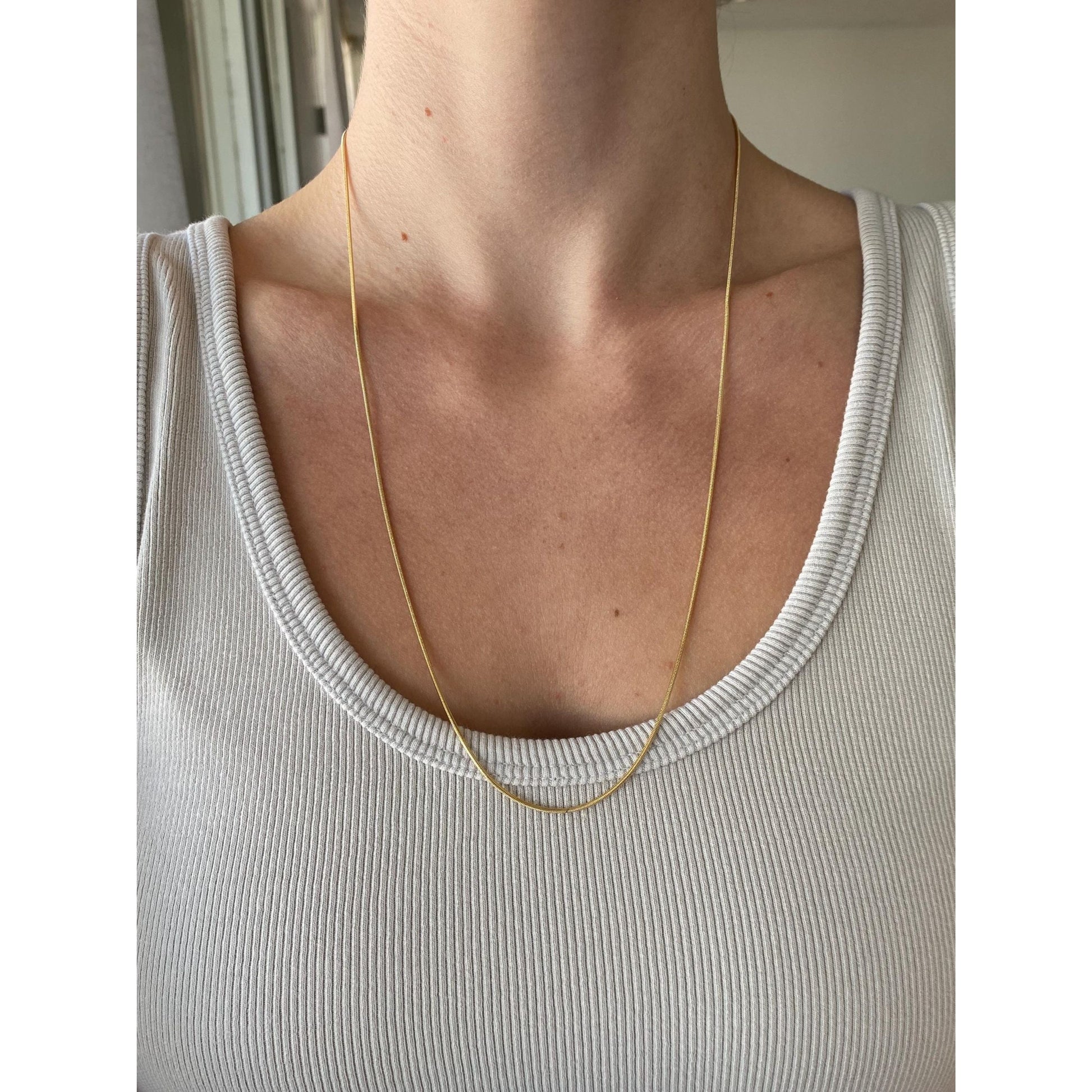 Vintage Solid 14k Yellow Gold Long Snake Chain Necklace - 24 inches