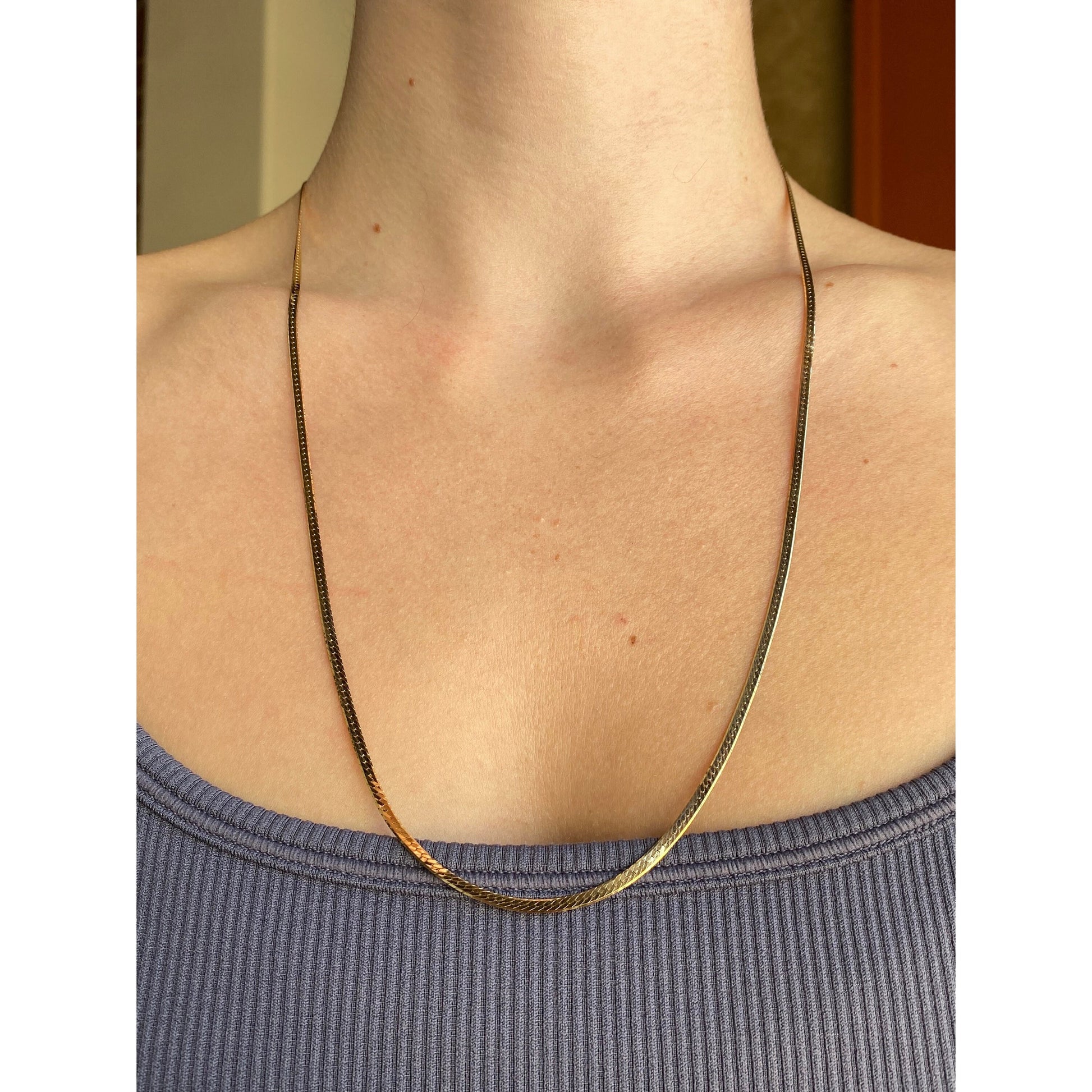 Vintage Solid 14k Yellow Gold Long Thin Herringbone Chain Necklace - 24.25 inches