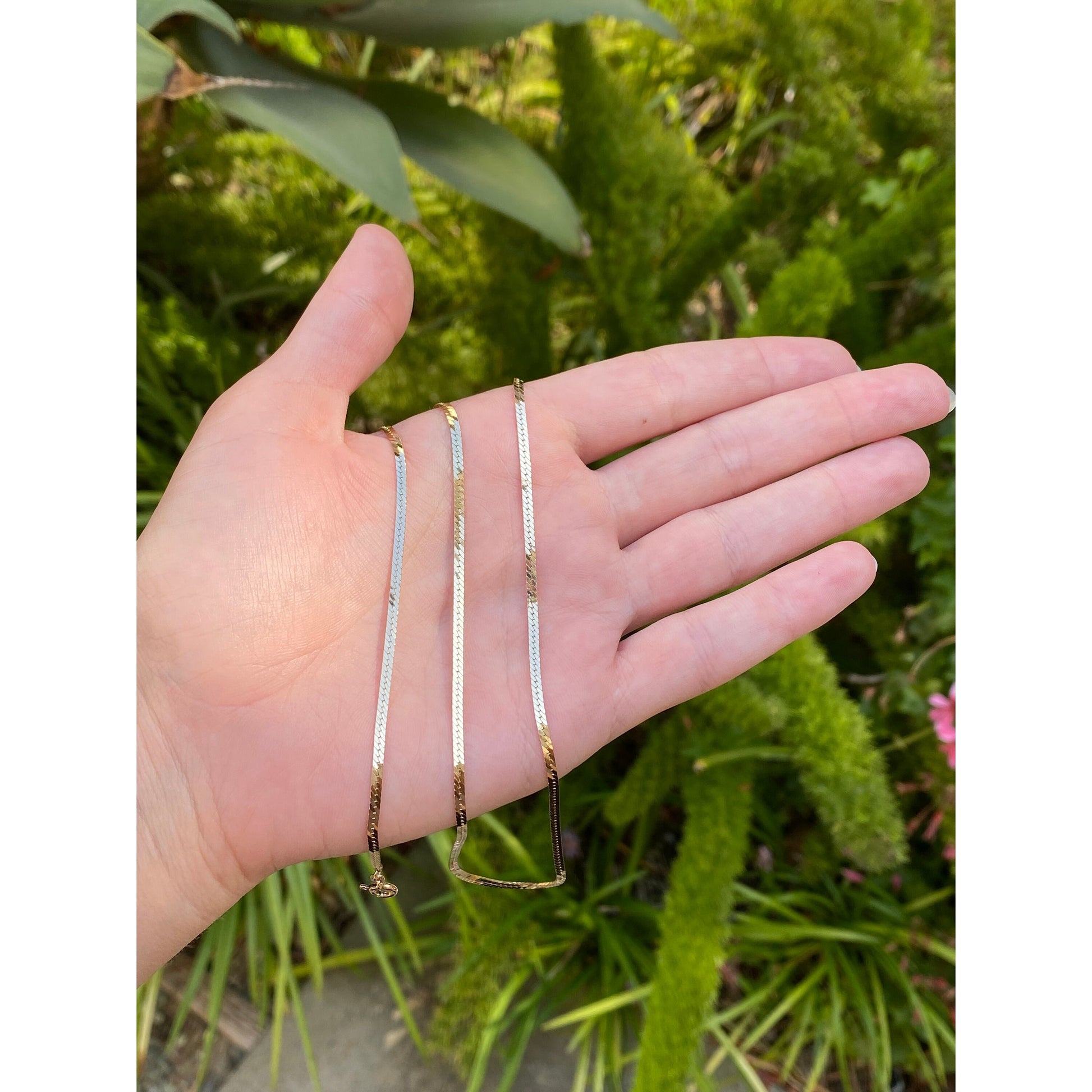 Vintage Solid 14k Yellow Gold Long Thin Herringbone Chain Necklace - 30.25 inches
