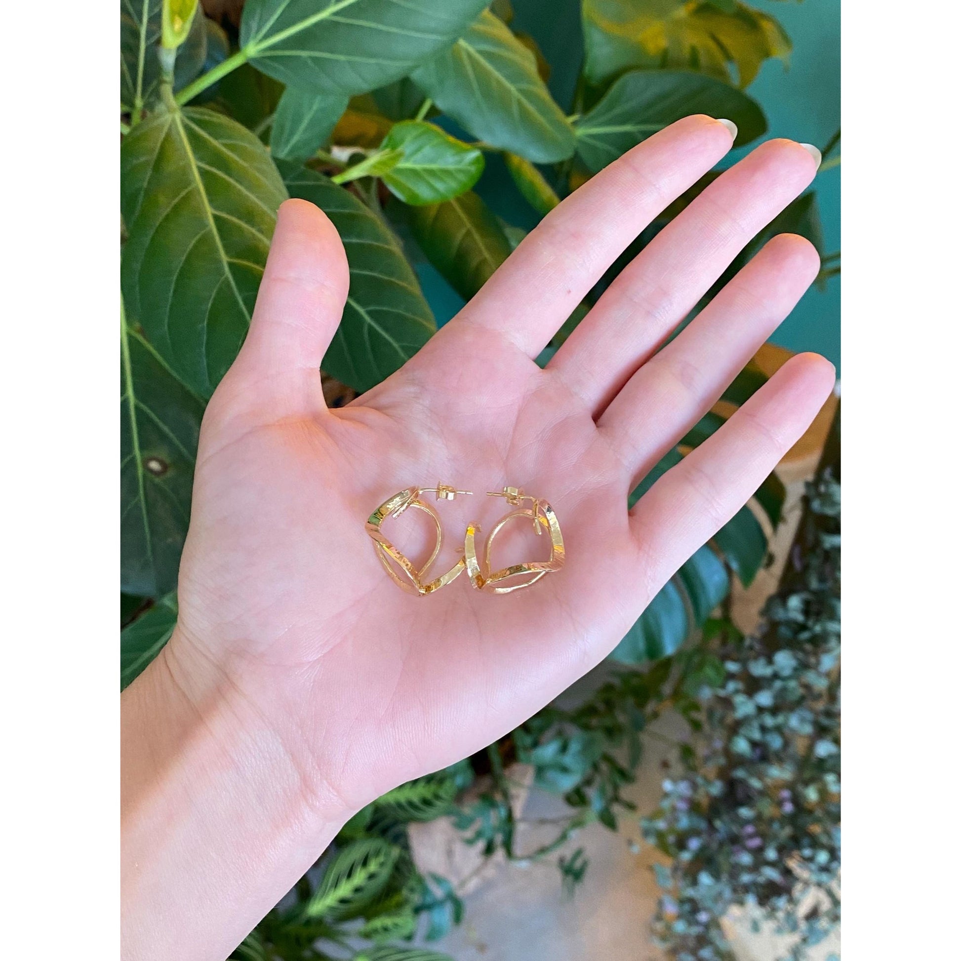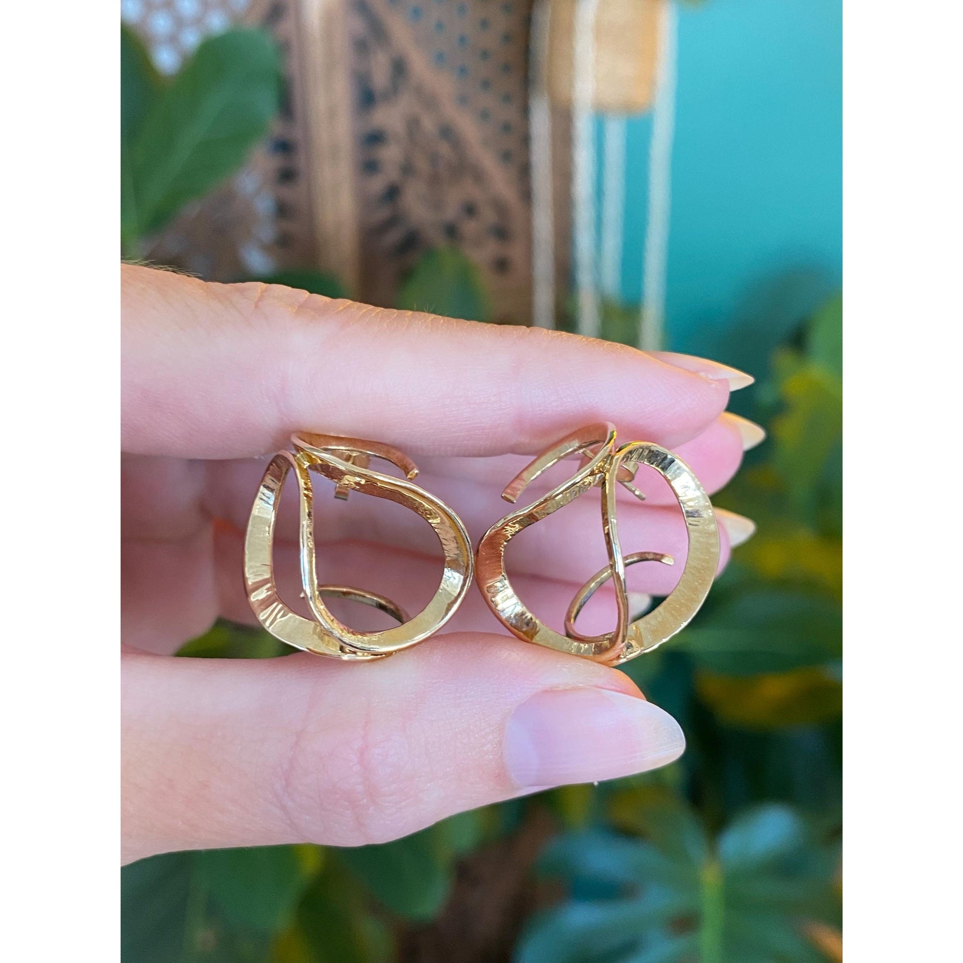 Vintage Solid 14k Yellow Gold Loopy Swirl Hoop Drop Earrings