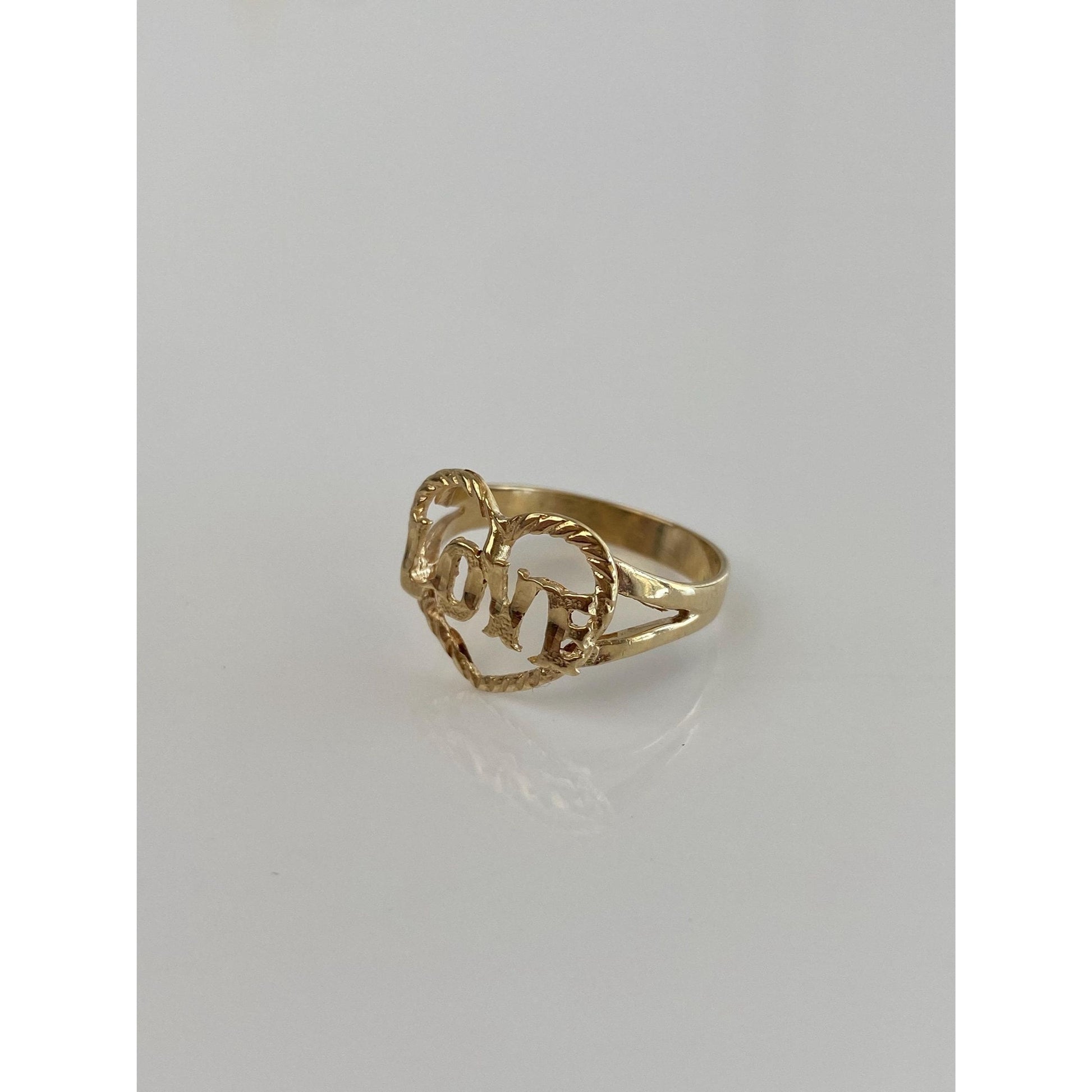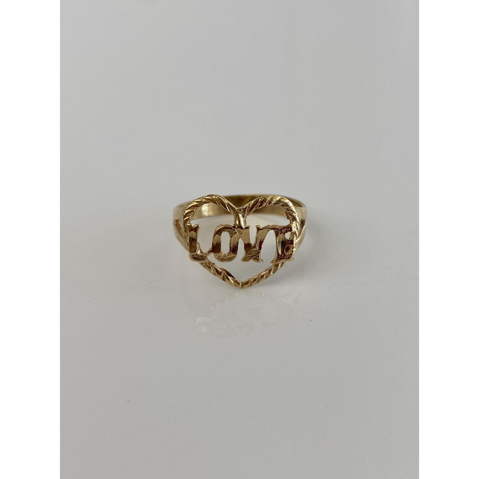 Vintage Solid 14k Yellow Gold Love Heart Ring - Size 5.75