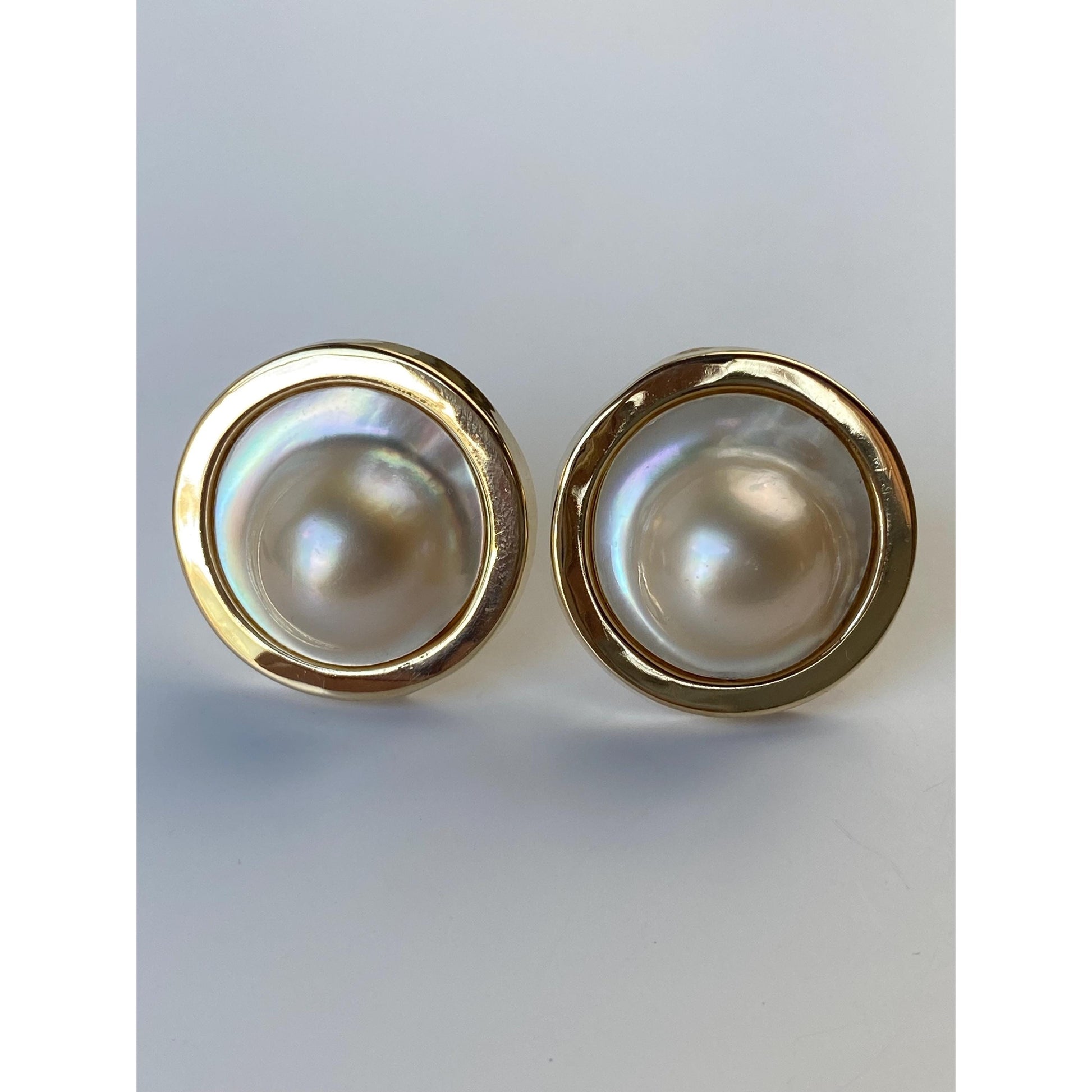 Vintage Solid 14k Yellow Gold Mabe Pearl Stud Earrings