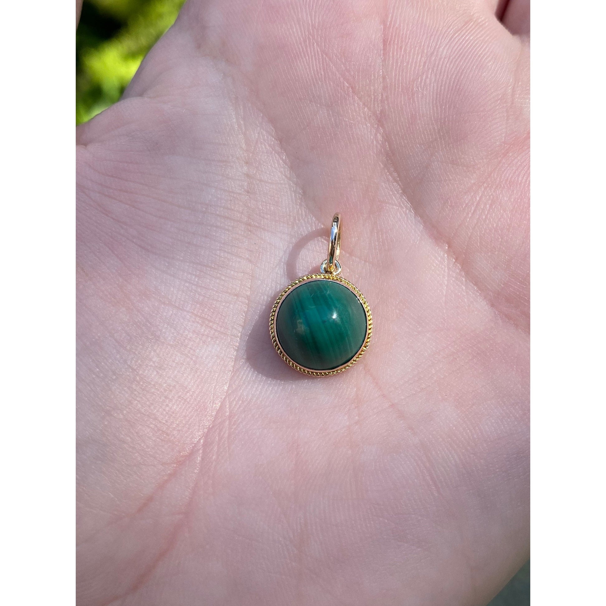 Vintage Solid 14k Yellow Gold Malachite Charm