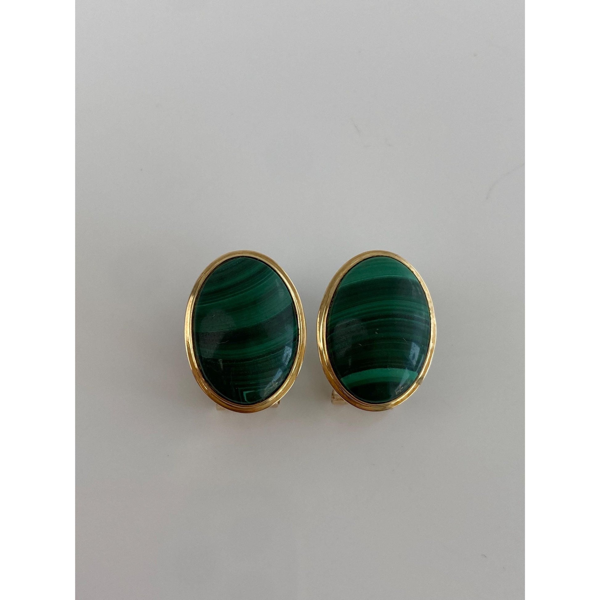 Vintage Solid 14k Yellow Gold Malachite Drop Earrings