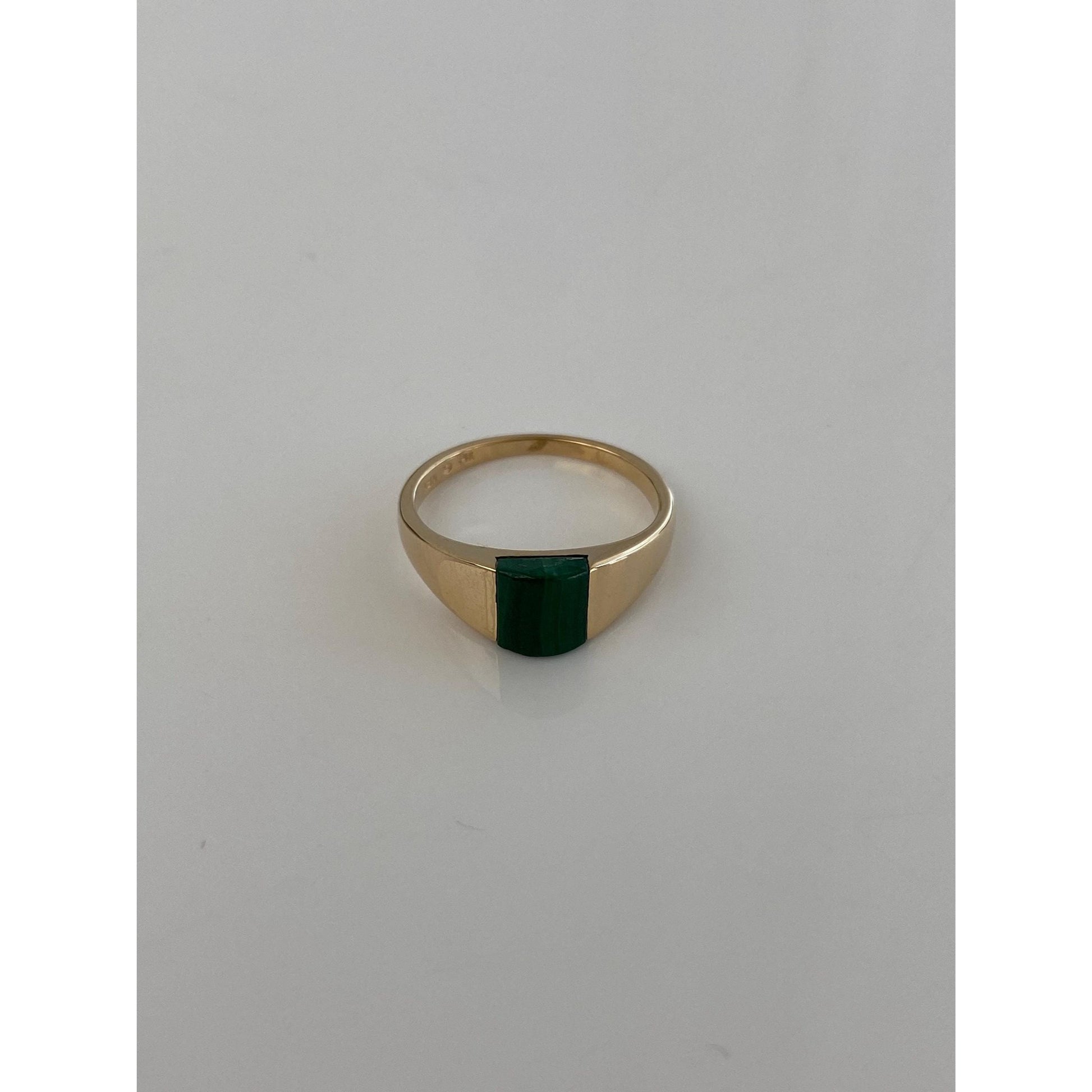 Vintage Solid 14k Yellow Gold Malachite Ring - Size 5.75