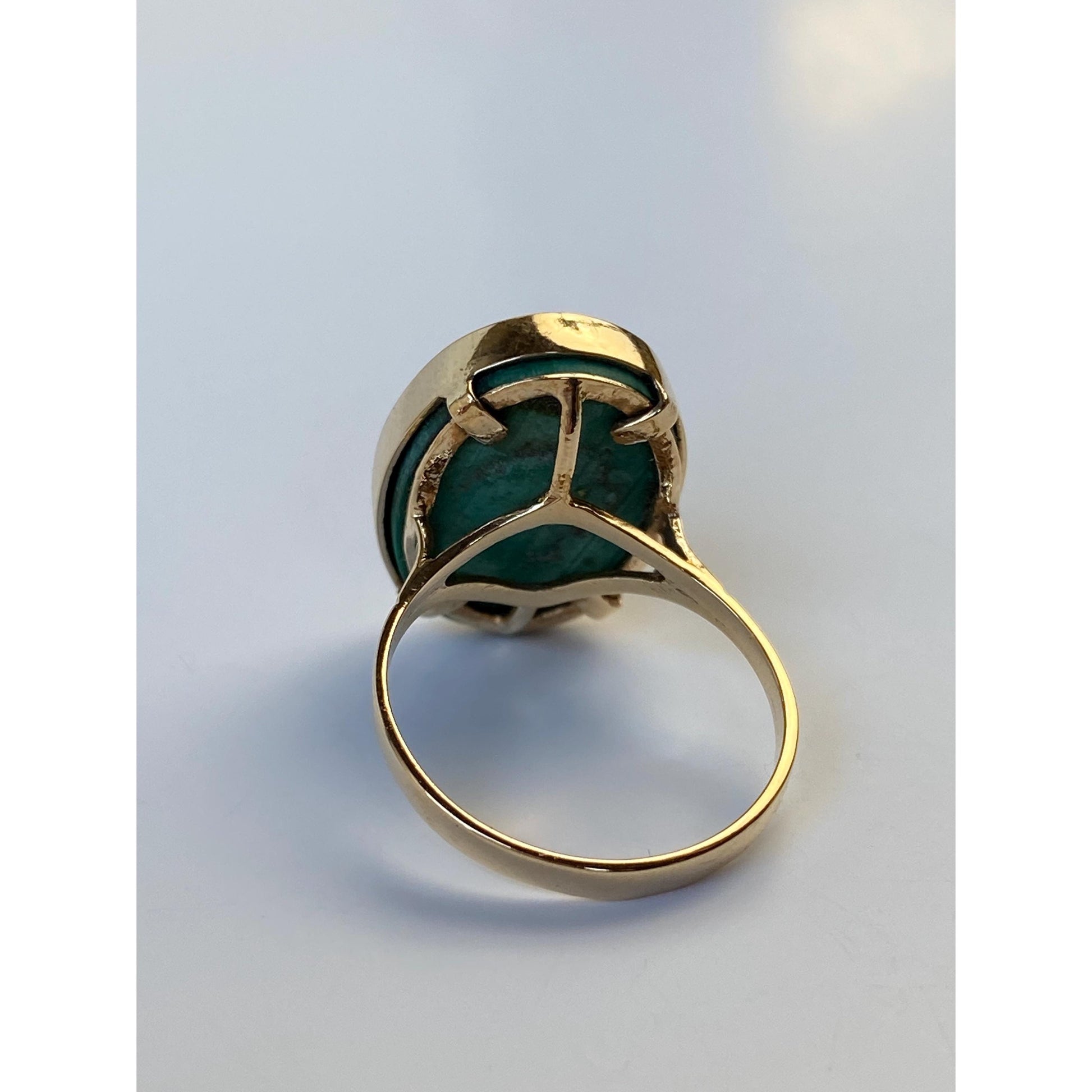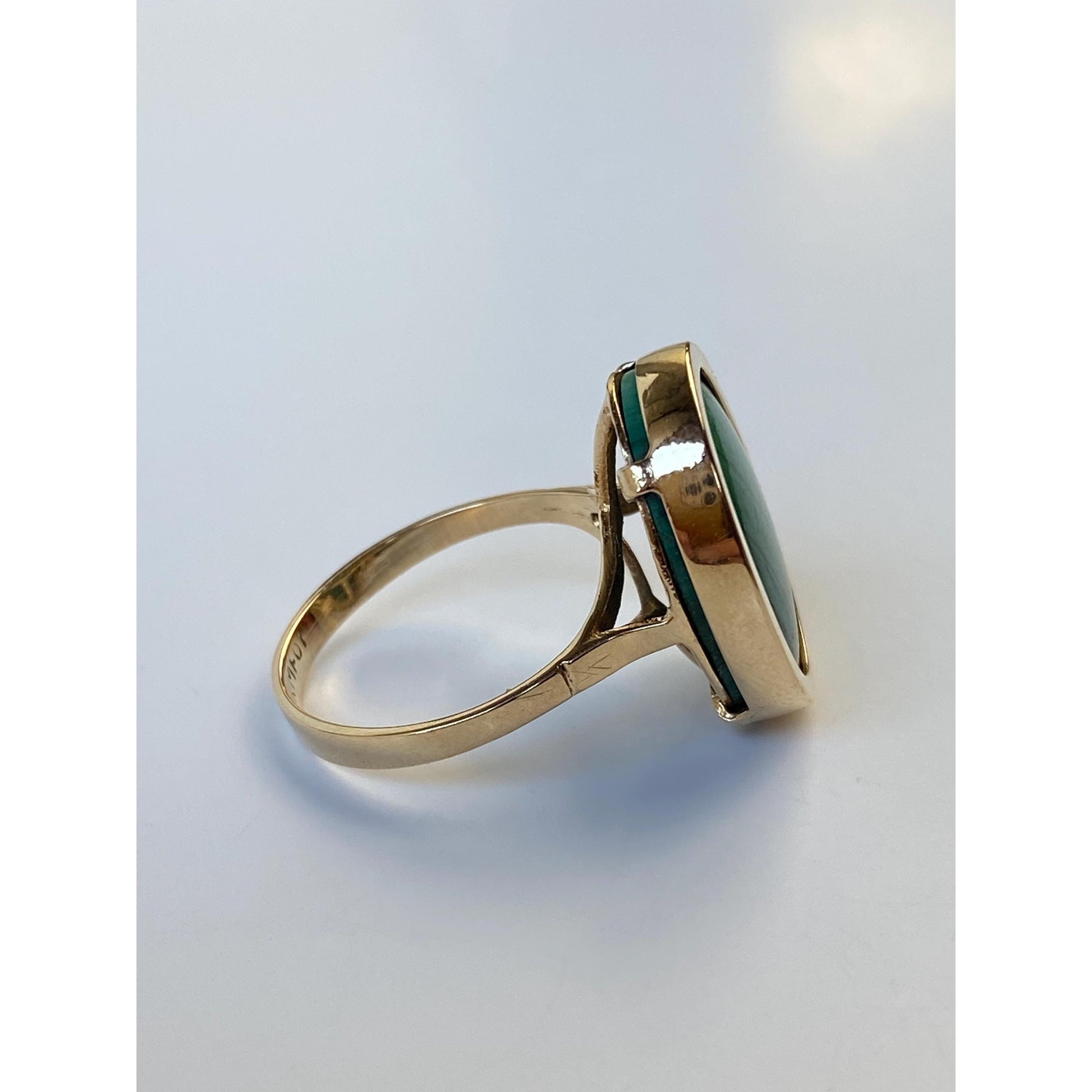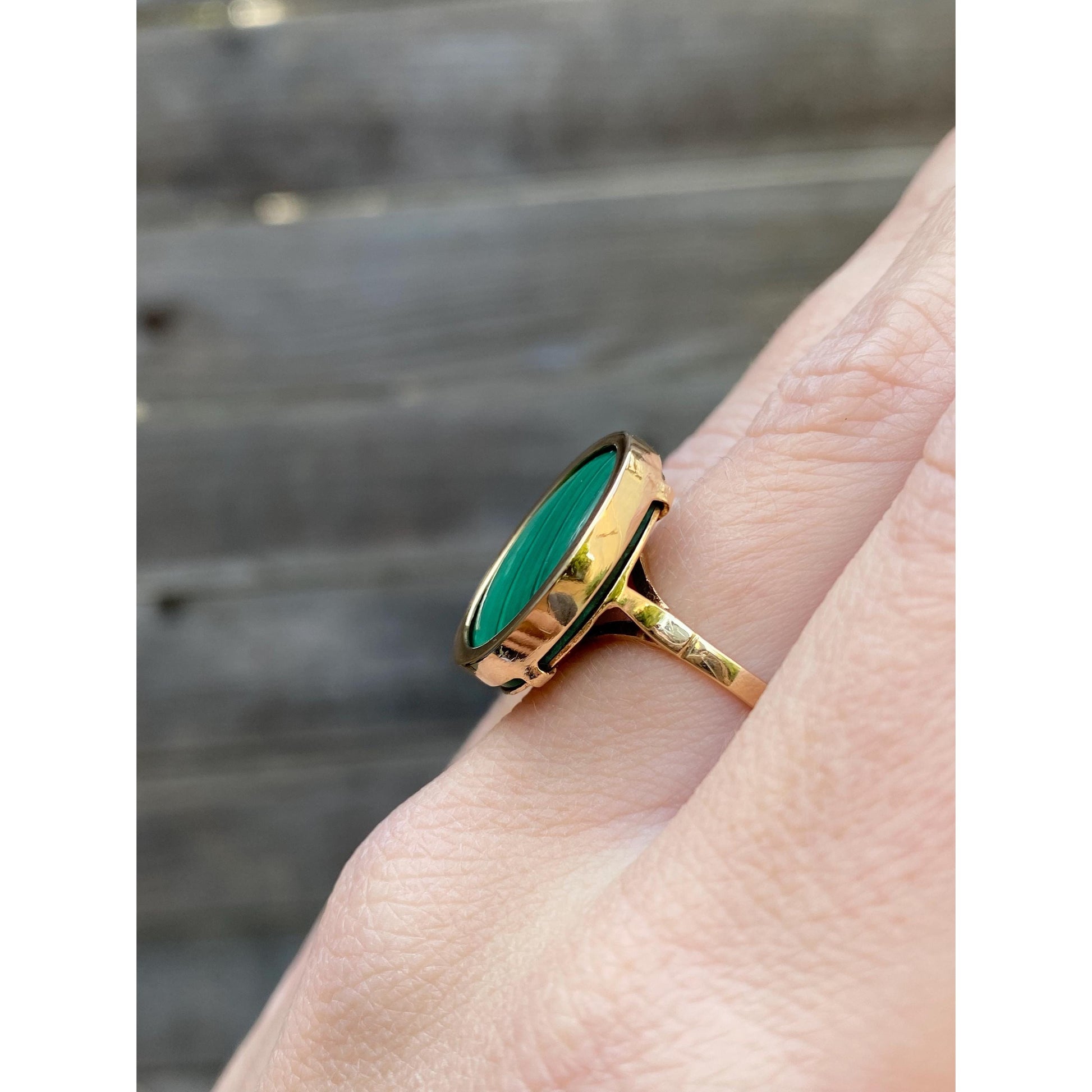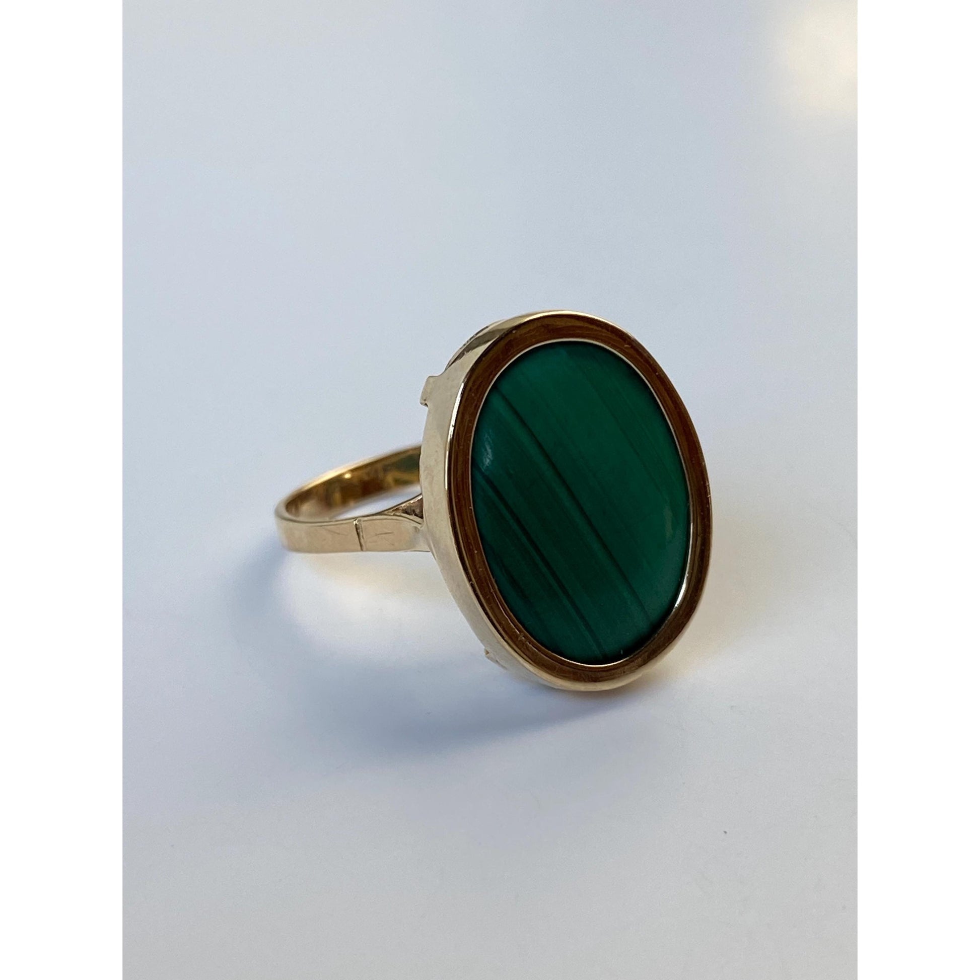 Vintage Solid 14k Yellow Gold Malachite Ring - Size 6.25