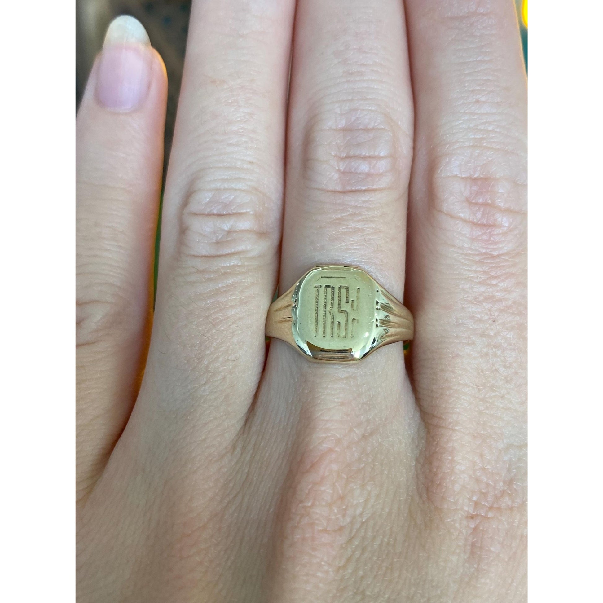 Vintage Solid 14k Yellow Gold Monogram Signet Ring - Size 8