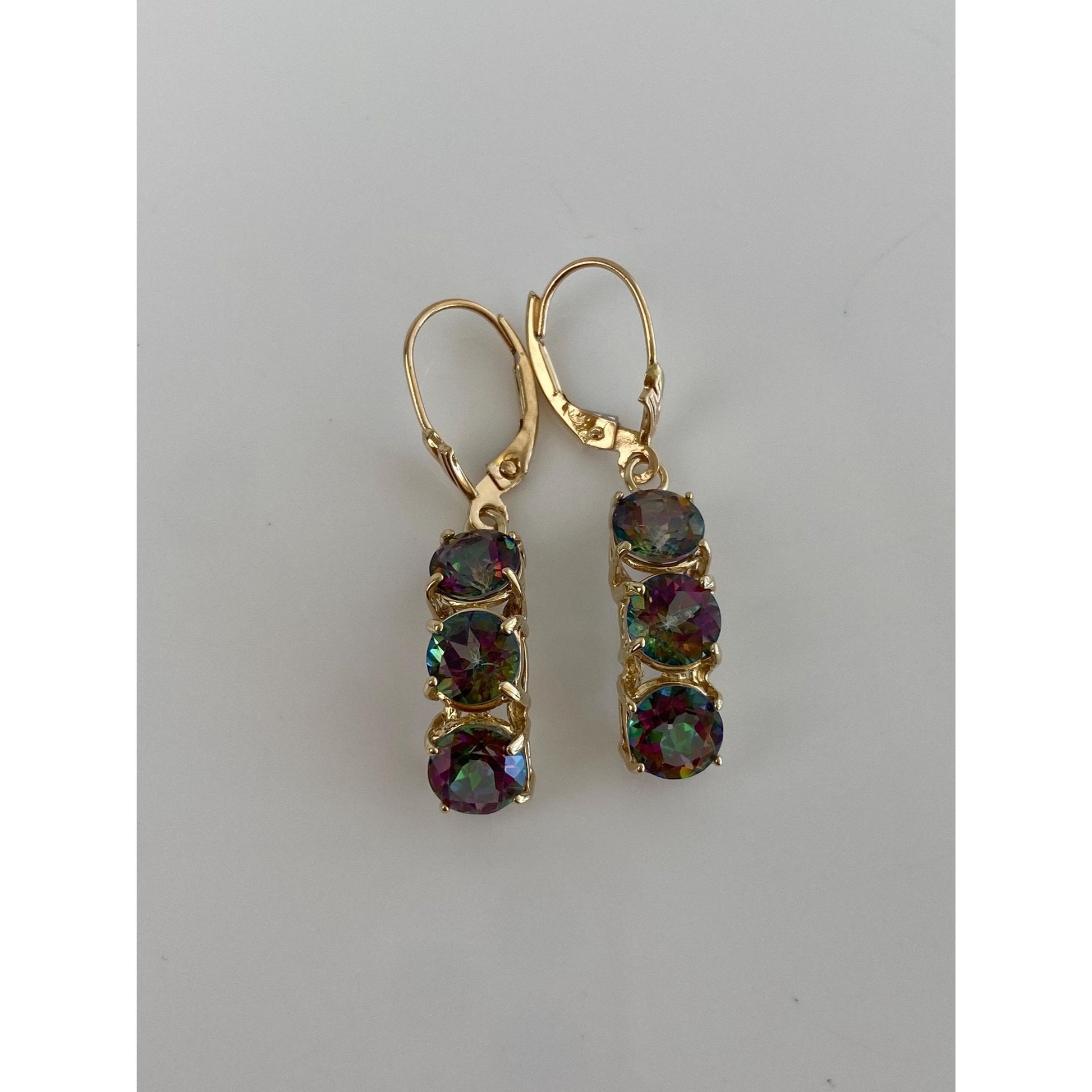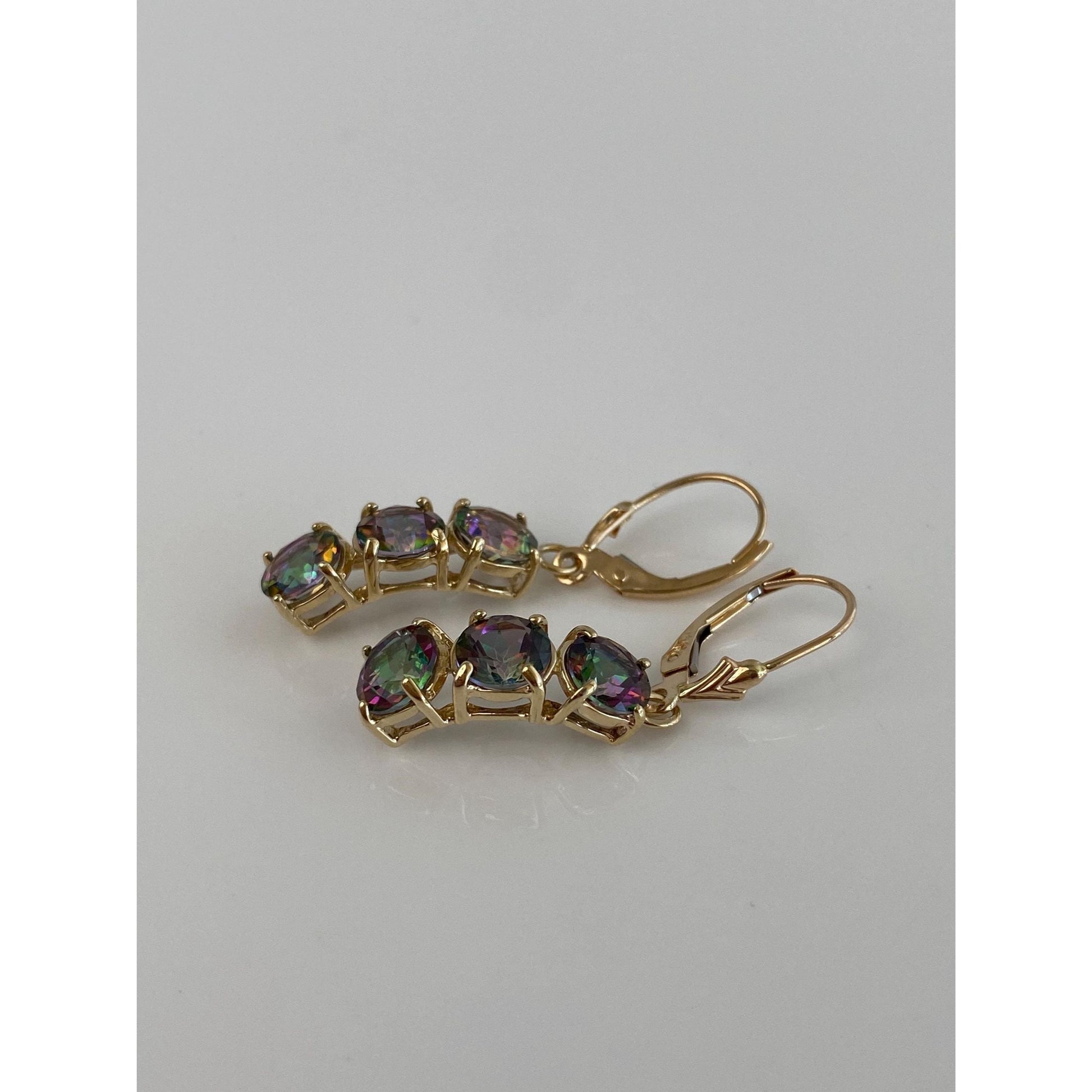 Vintage Solid 14k Yellow Gold Mystic Topaz Dangle Earrings