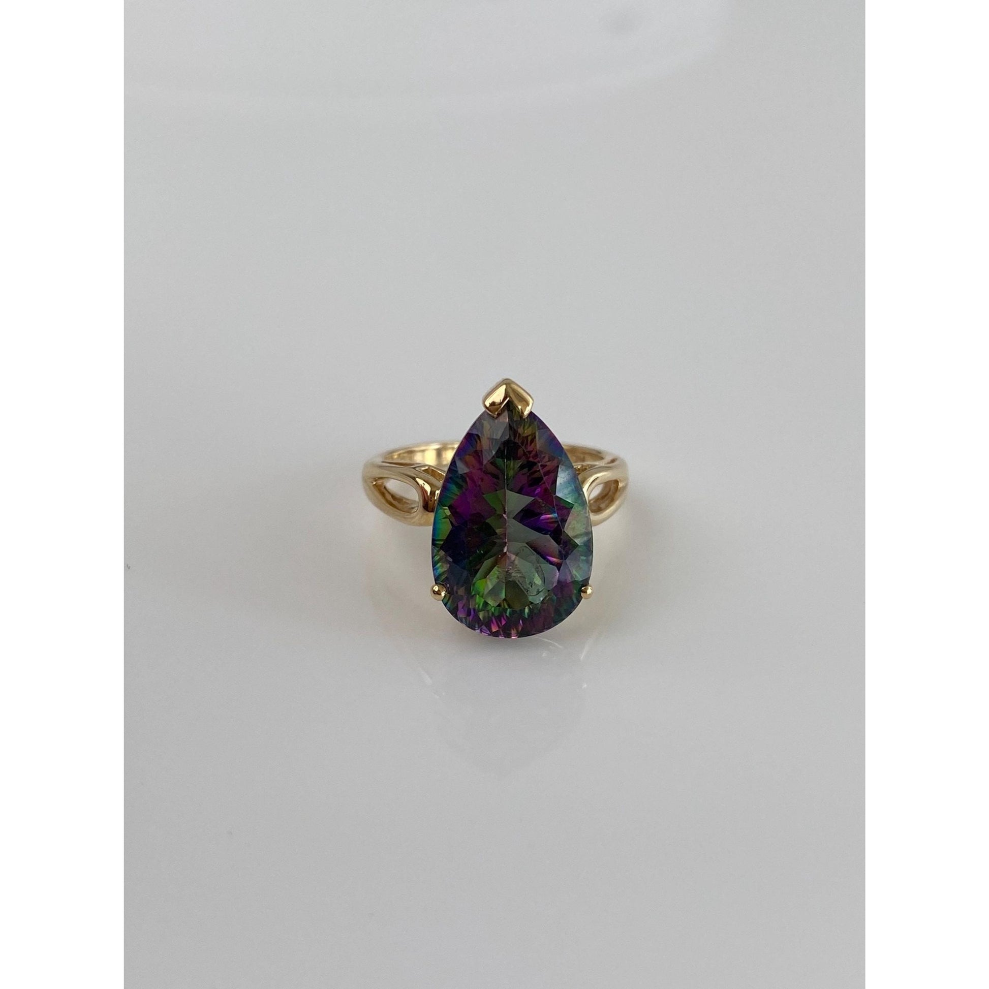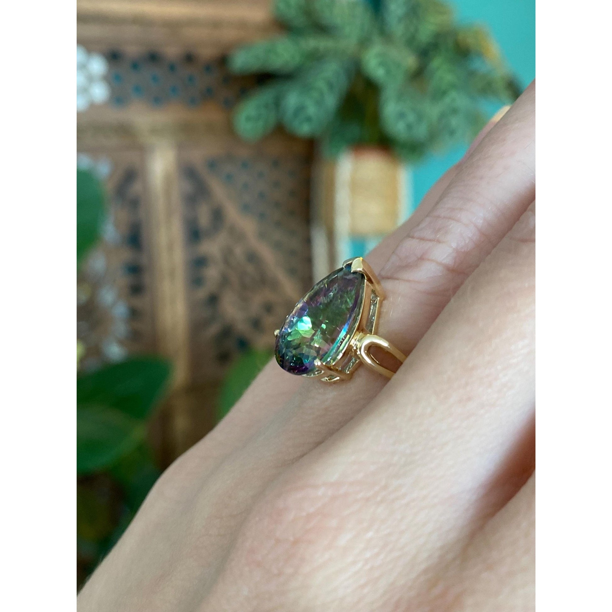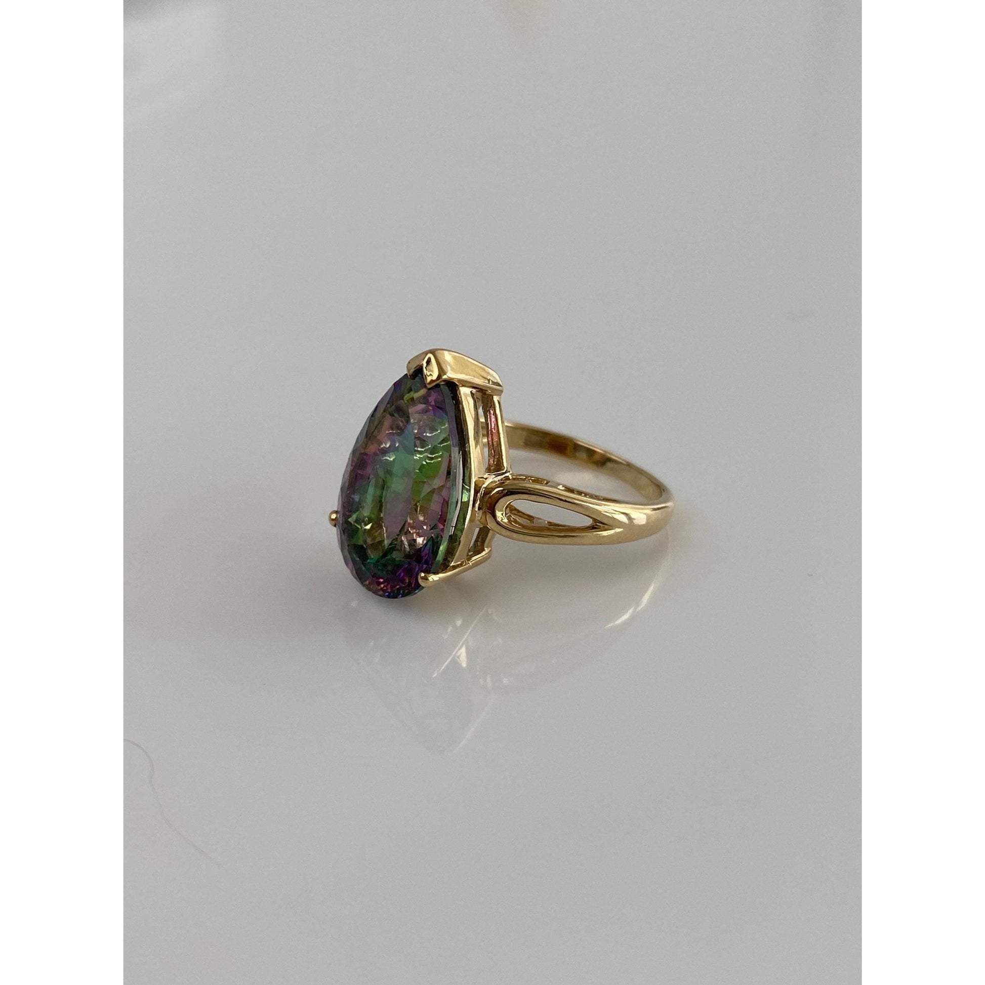 Vintage Solid 14k Yellow Gold Mystic Topaz Ring - Size 4.5