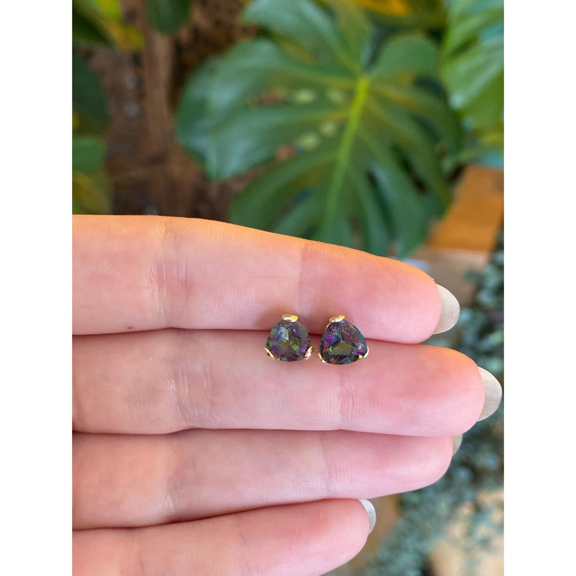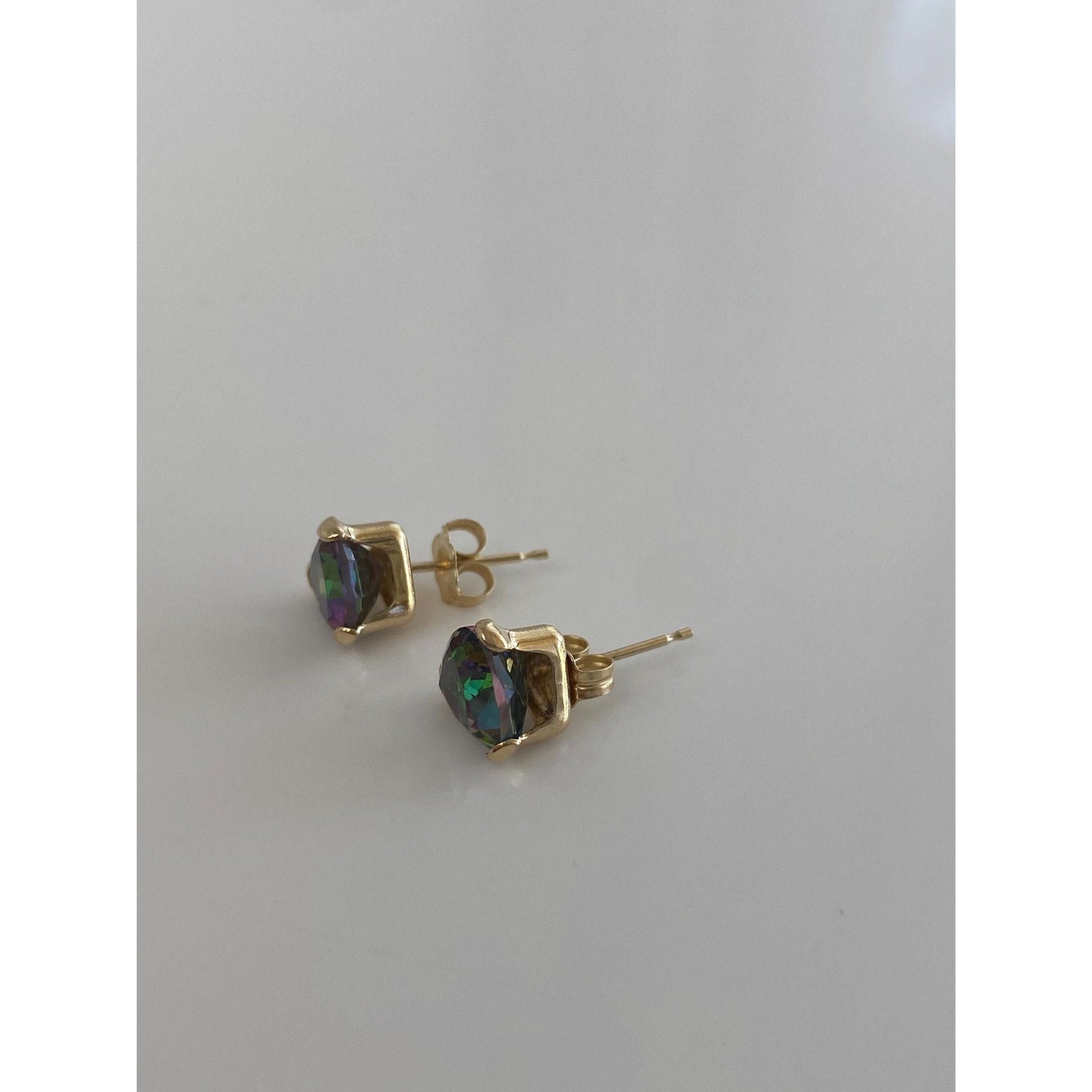 Vintage Solid 14k Yellow Gold Mystic Topaz Stud Earrings