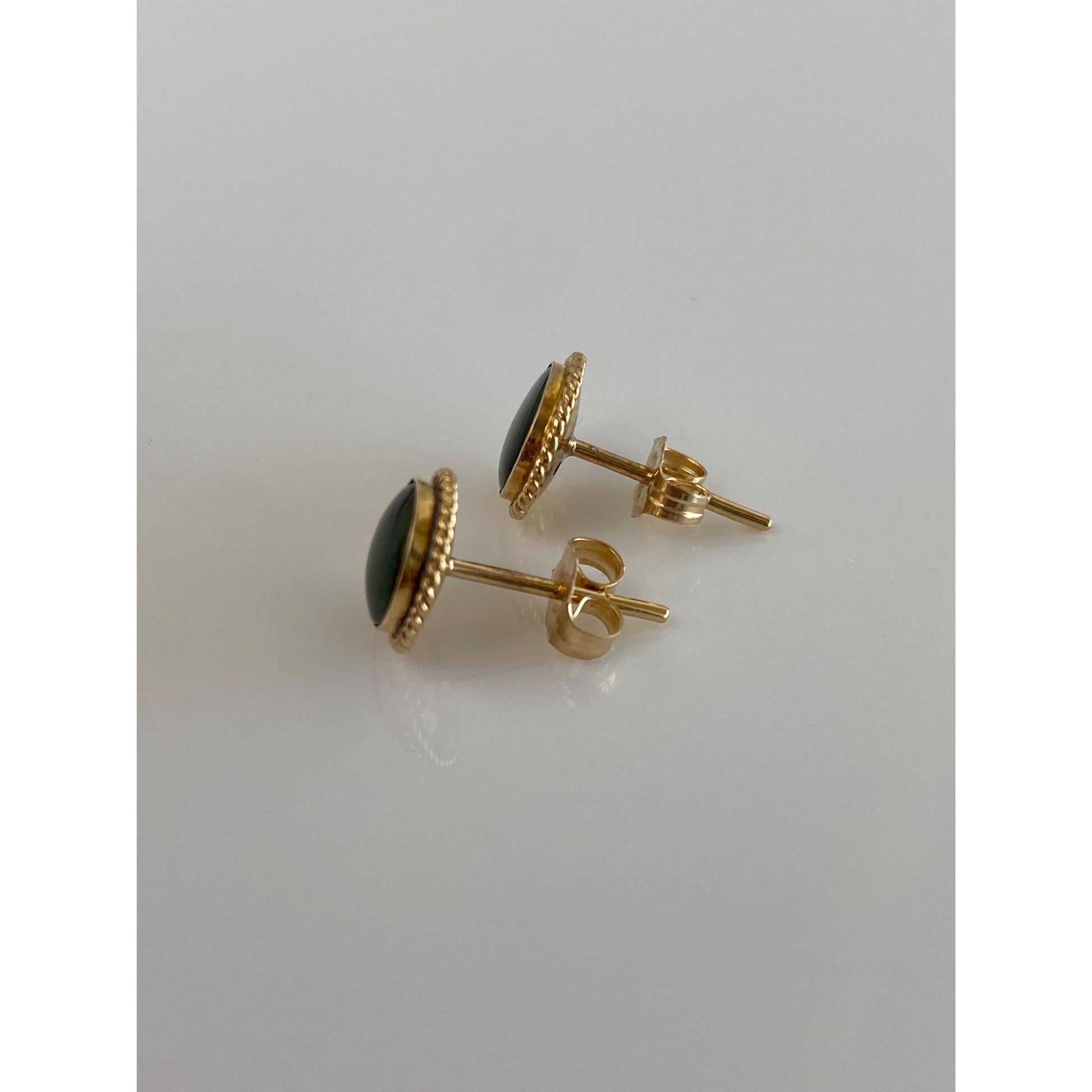 Vintage Solid 14k Yellow Gold Nephrite Jade Stud Earrings