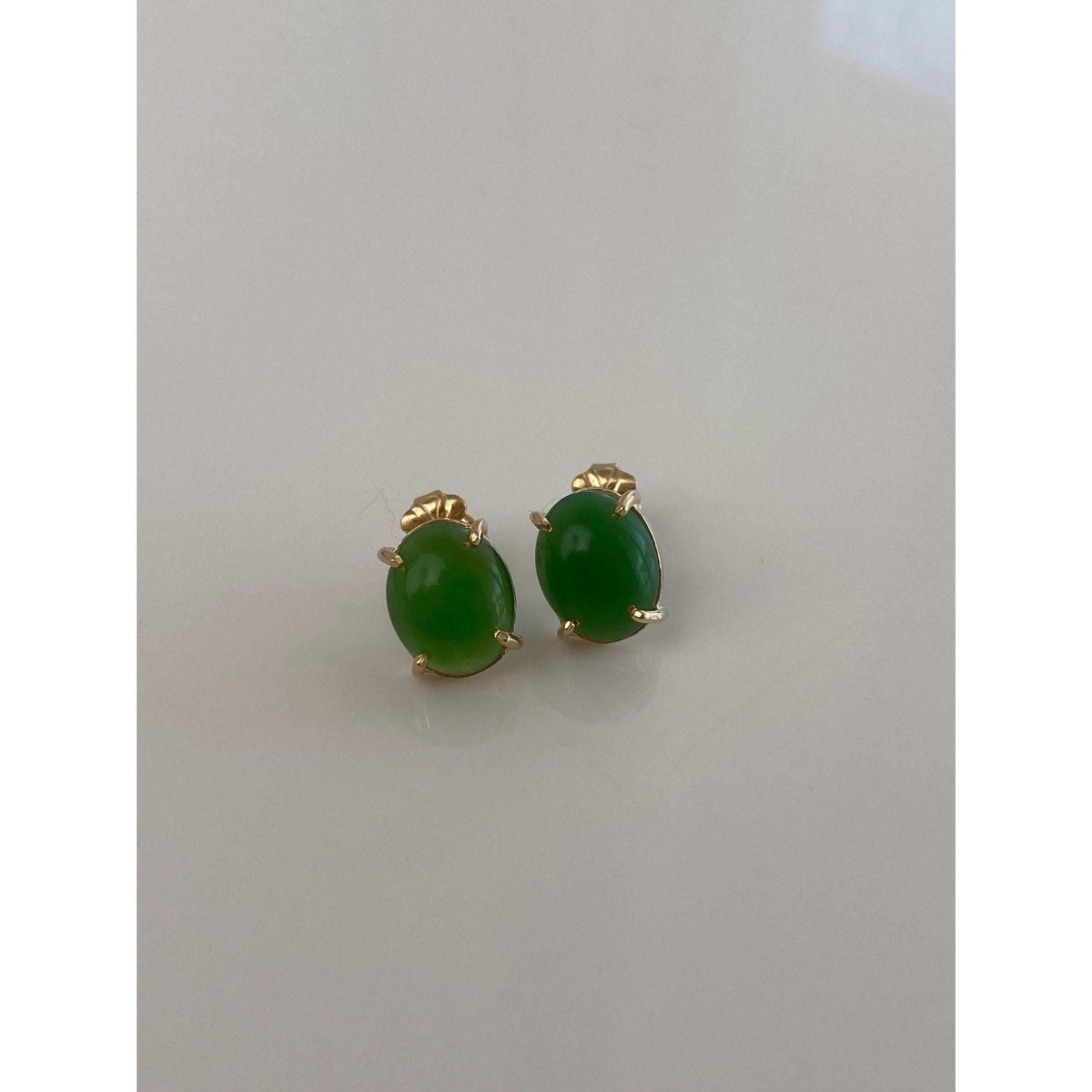 Vintage Solid 14k Yellow Gold Nephrite Stud Earrings