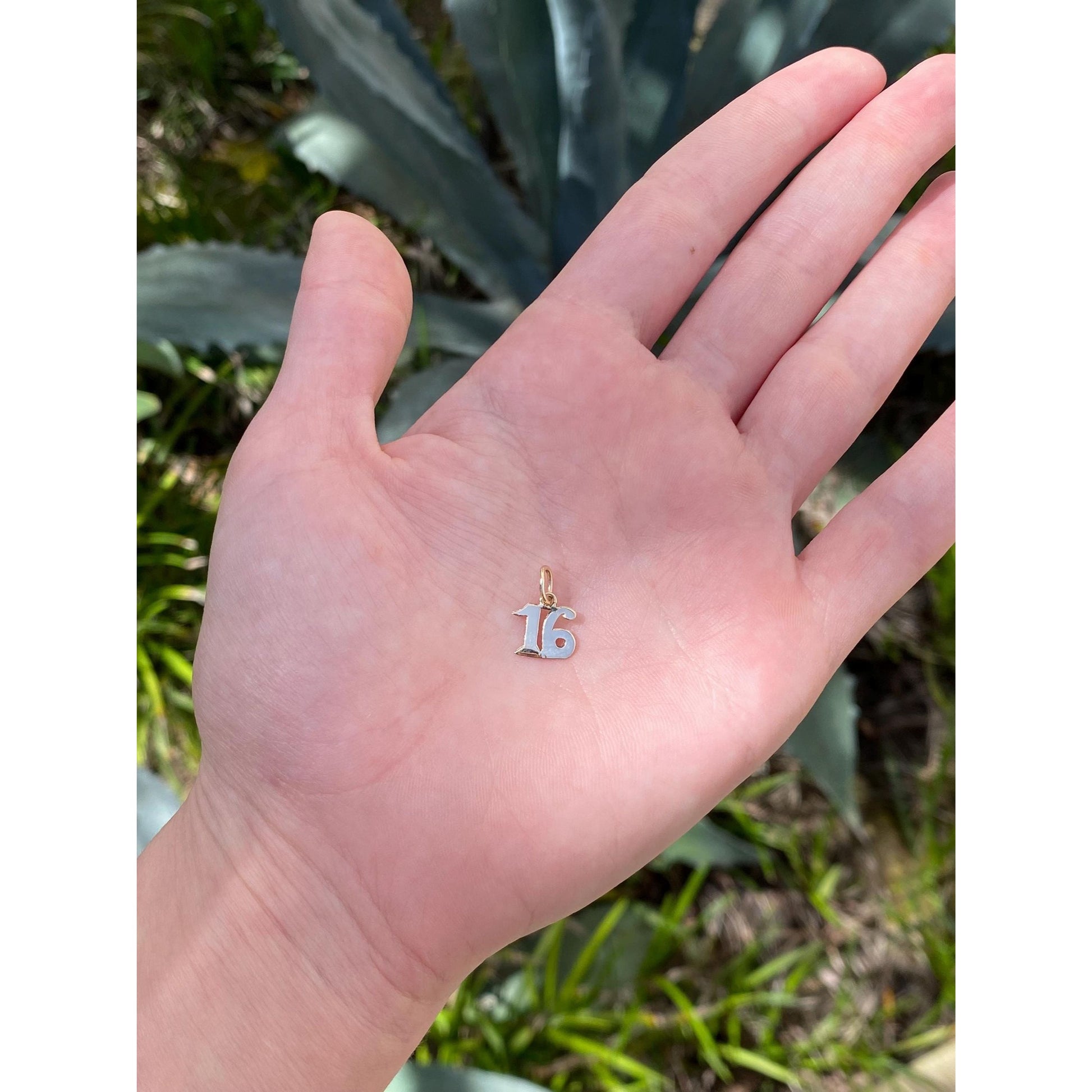 Vintage Solid 14k Yellow Gold Number '16' Charm