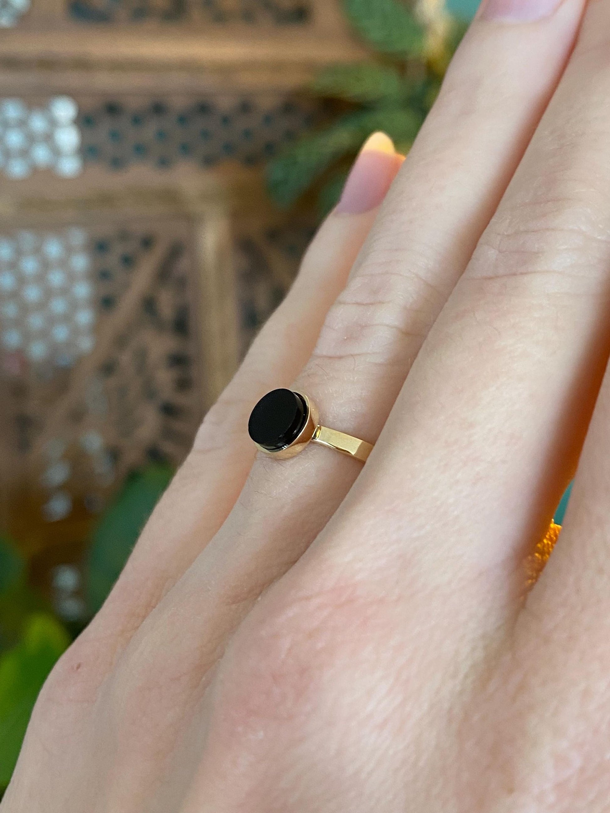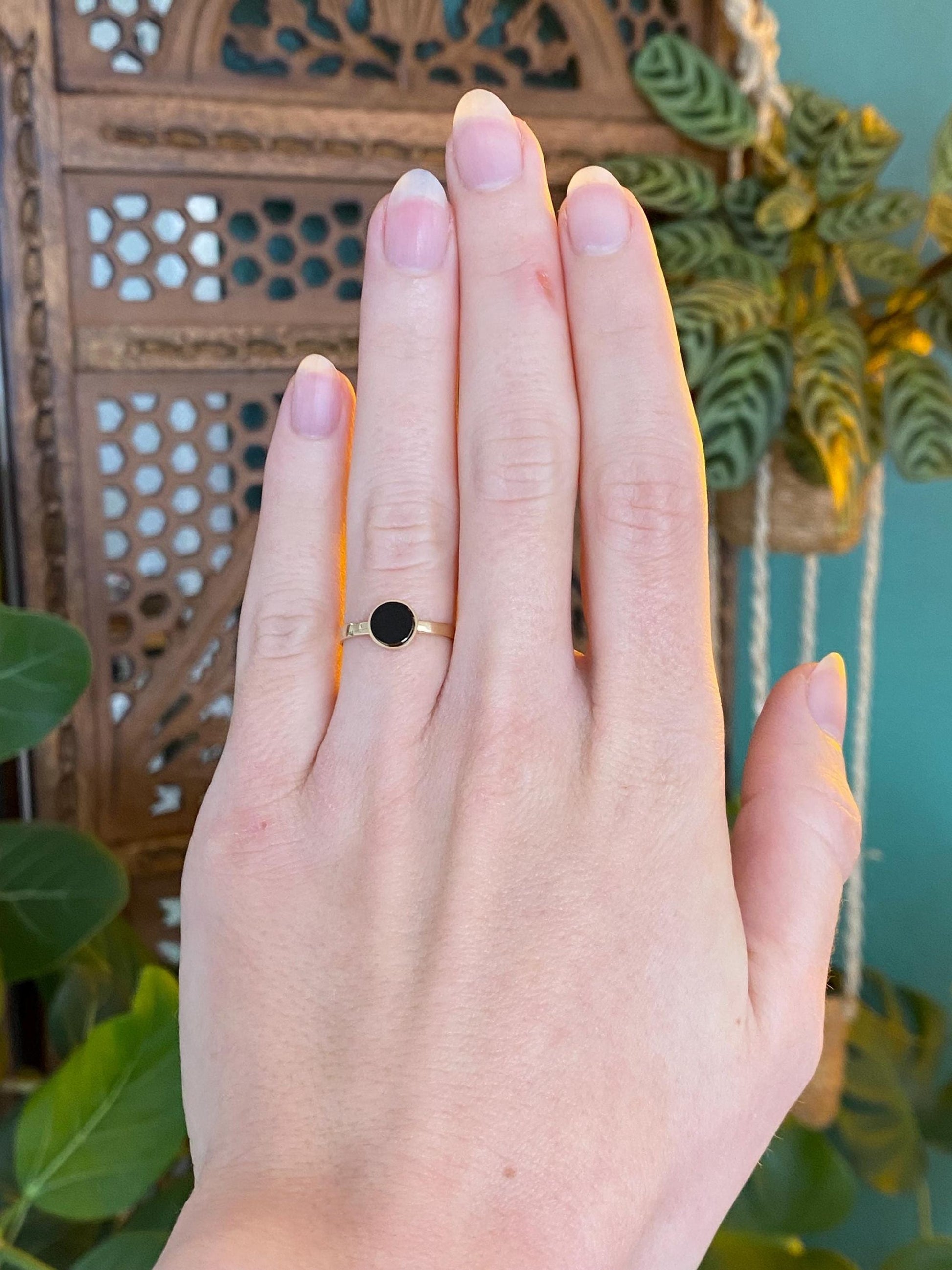 Vintage Solid 14k Yellow Gold Onyx Ring - Size 5.25