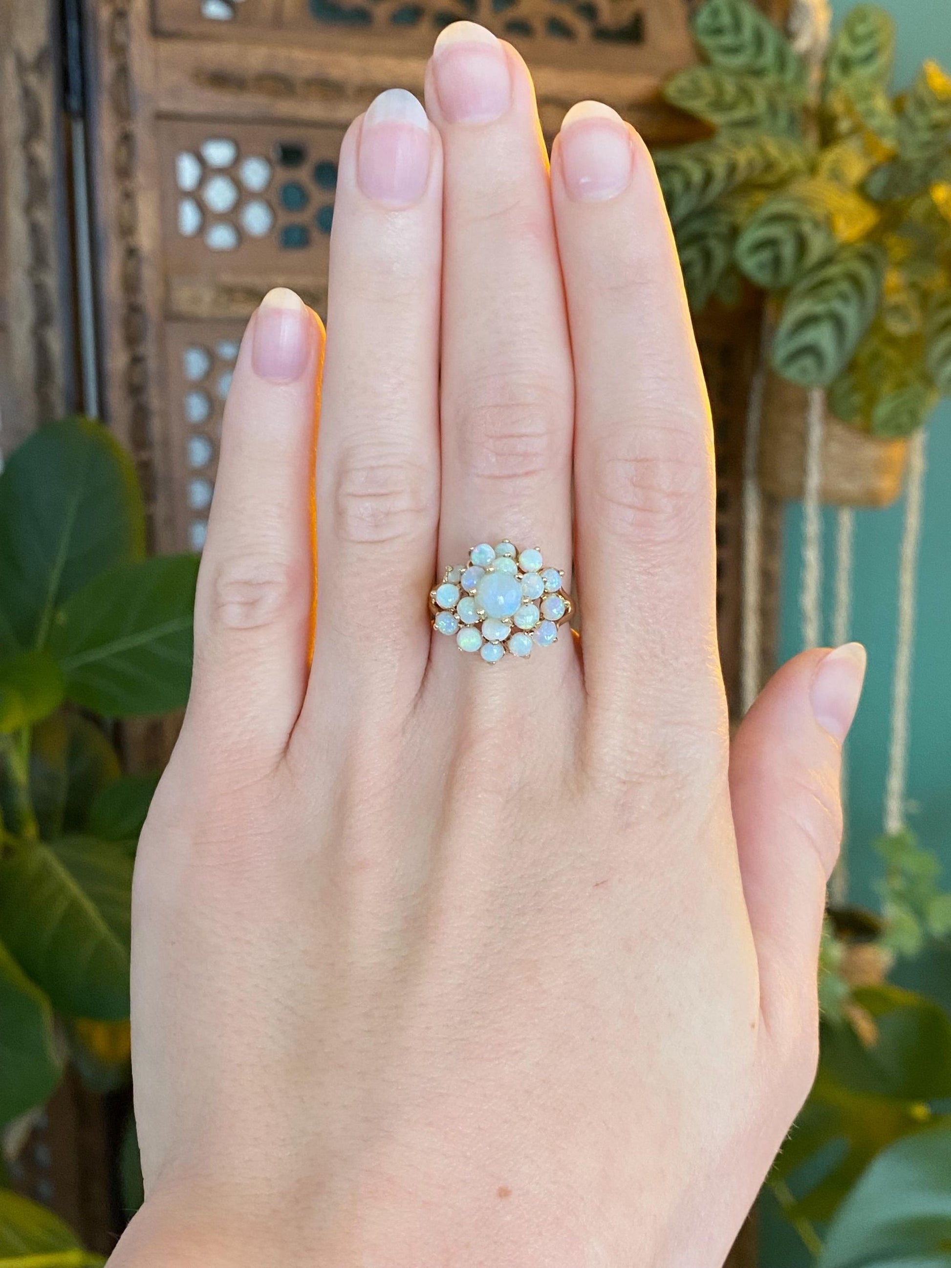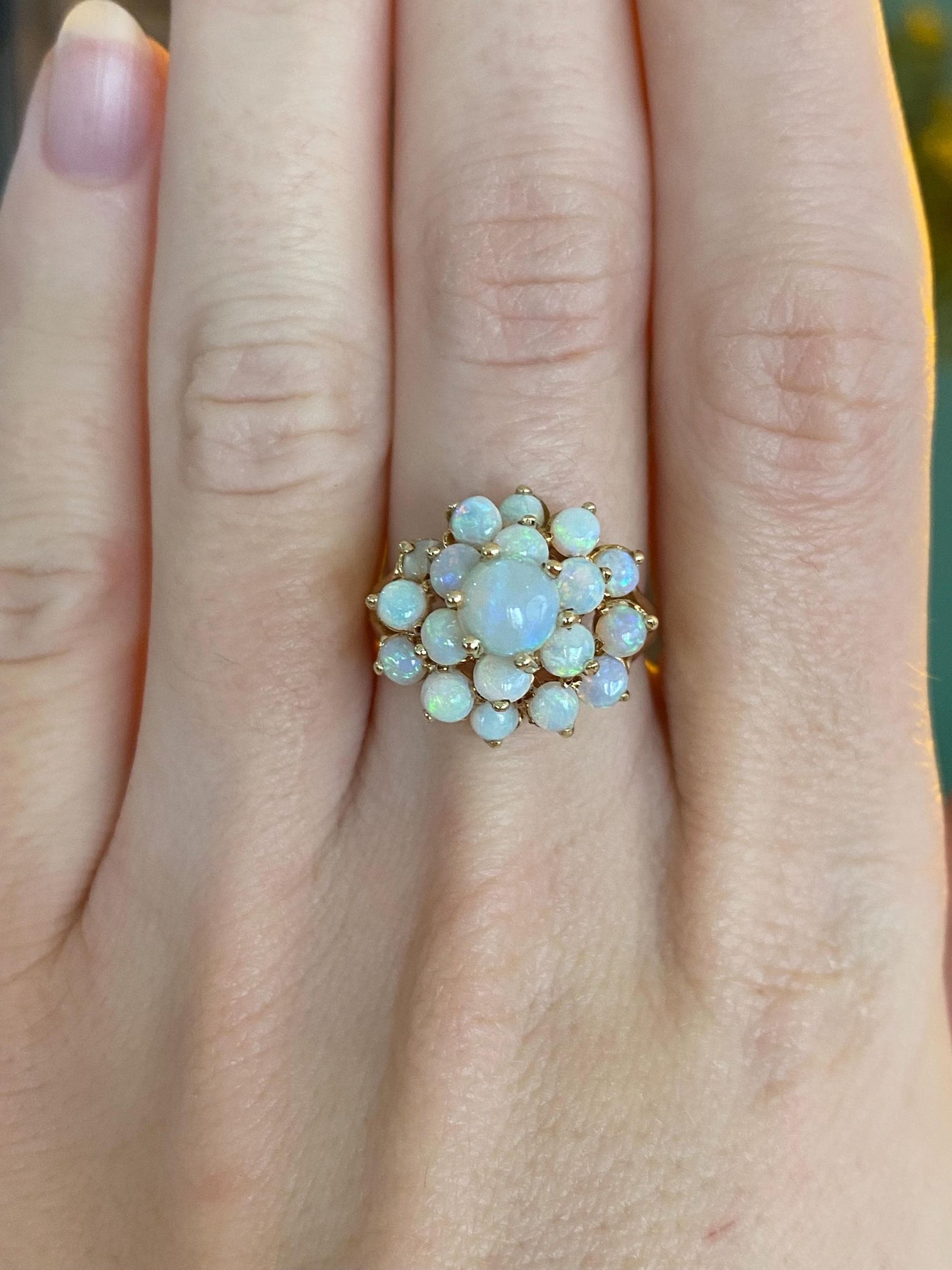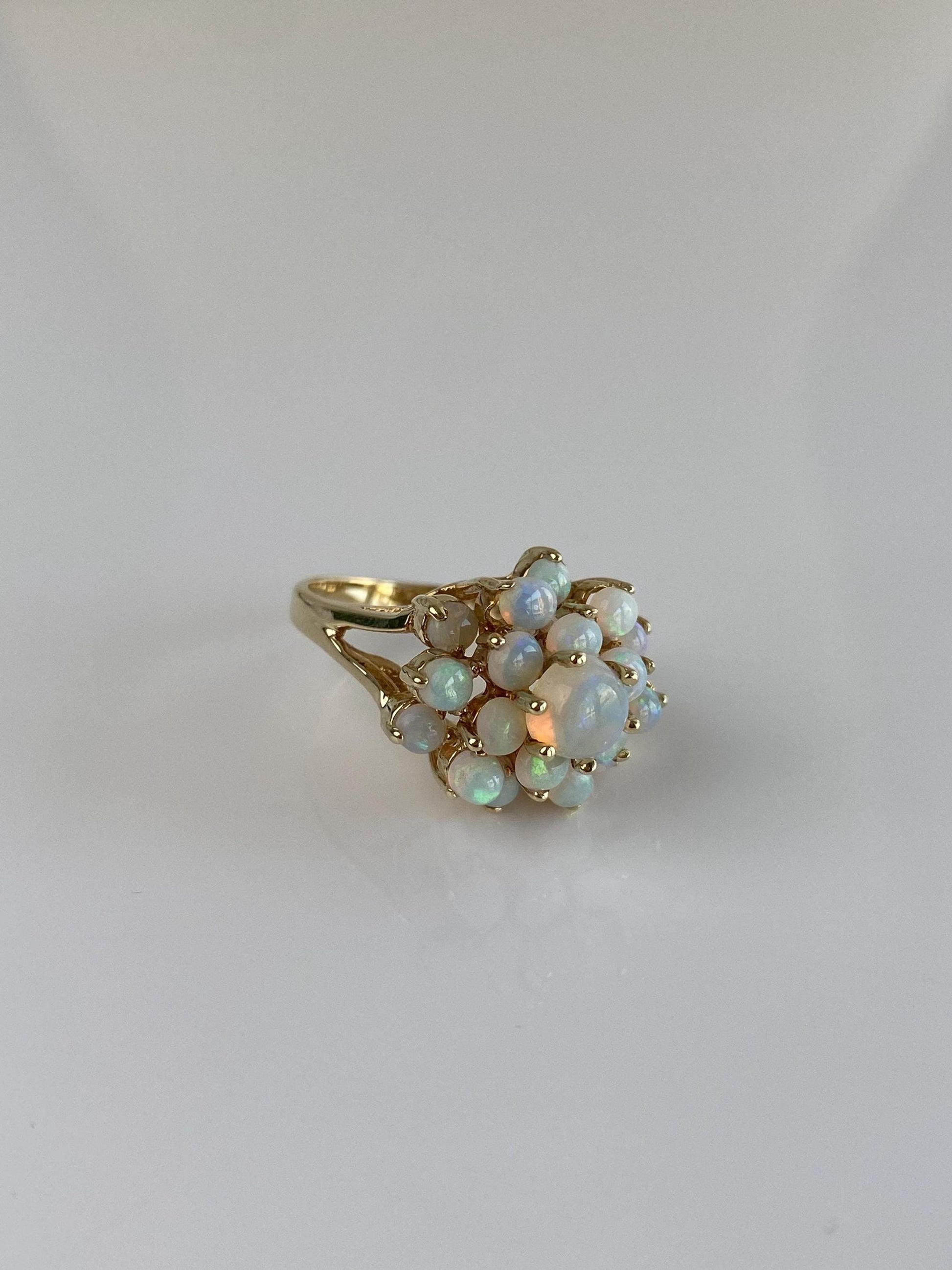 Vintage Solid 14k Yellow Gold Opal Cluster Ring - Size 6