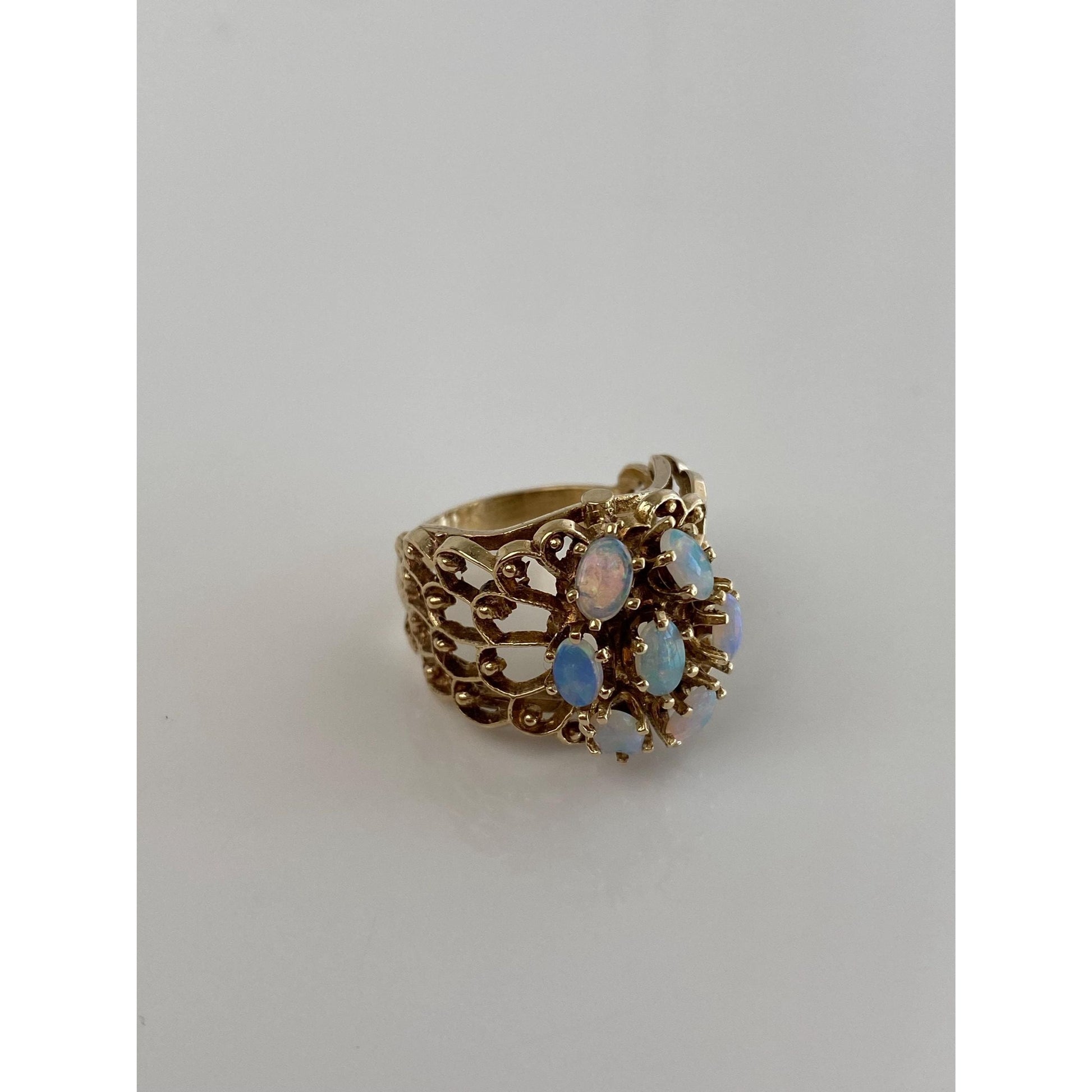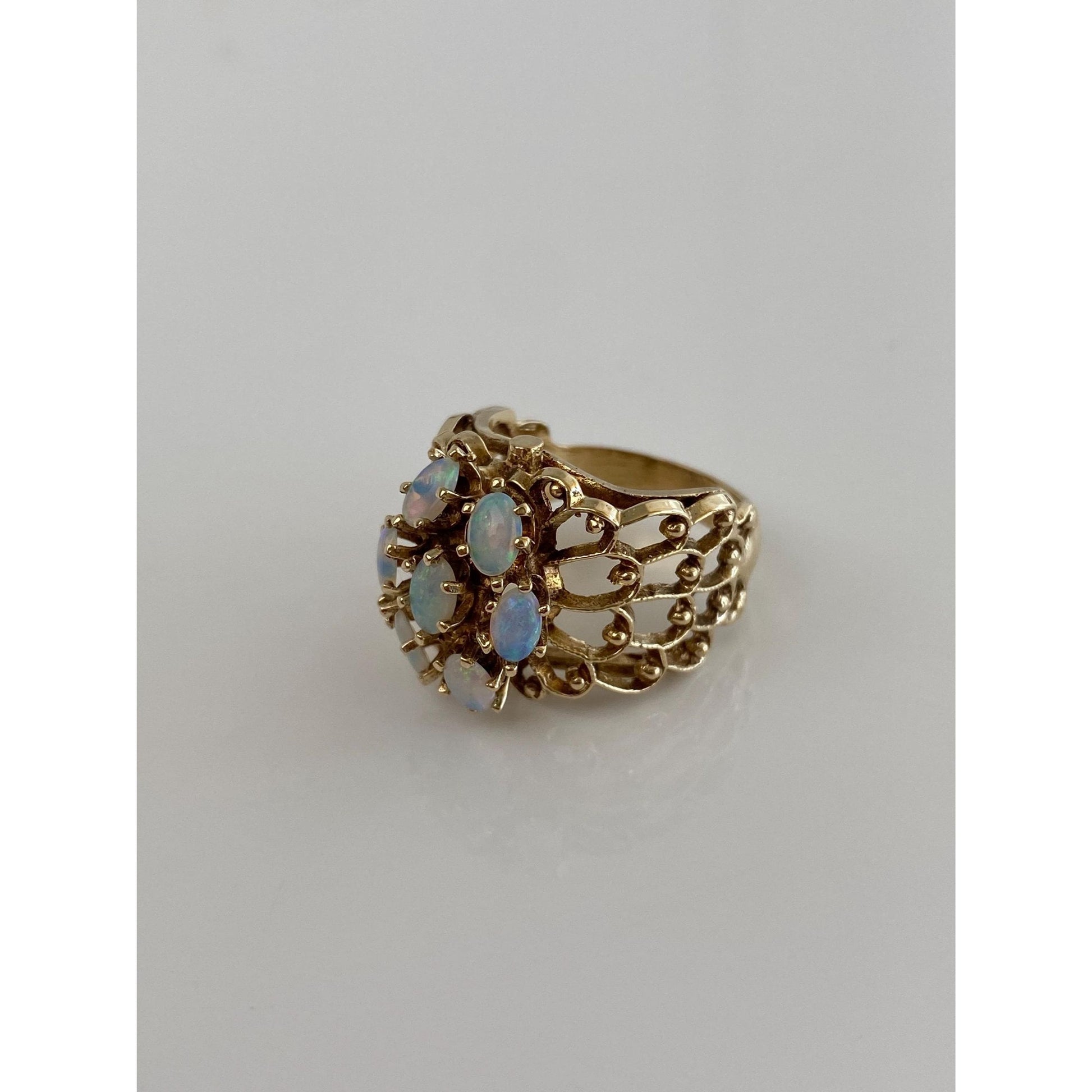 Vintage Solid 14k Yellow Gold Opal Cluster Ring - Size 6.25