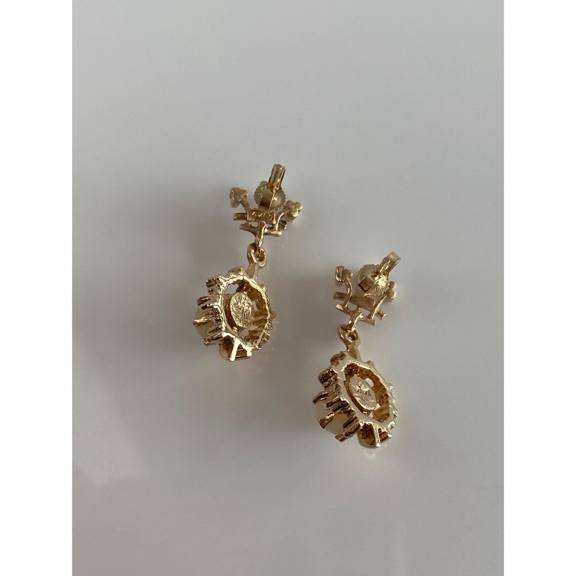 Vintage Solid 14k Yellow Gold Opal Dangle Stud Earrings