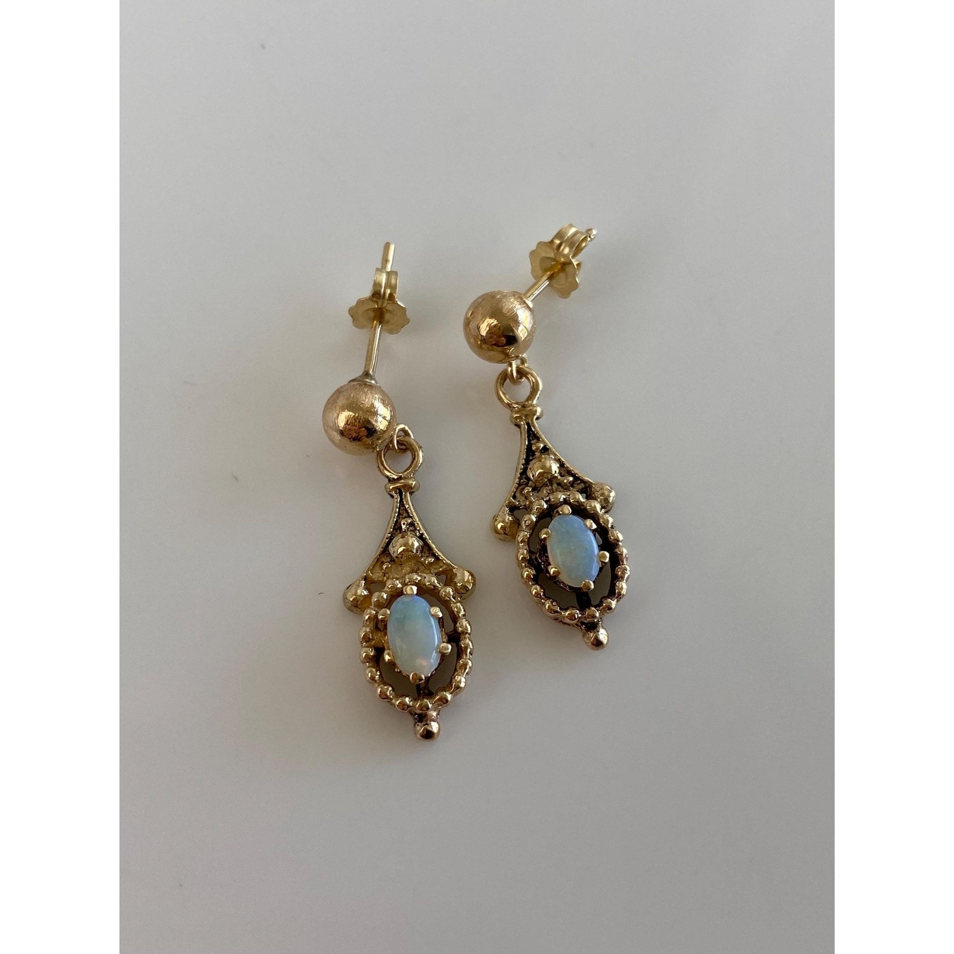 Vintage Solid 14k Yellow Gold Opal Dangle Stud Earrings