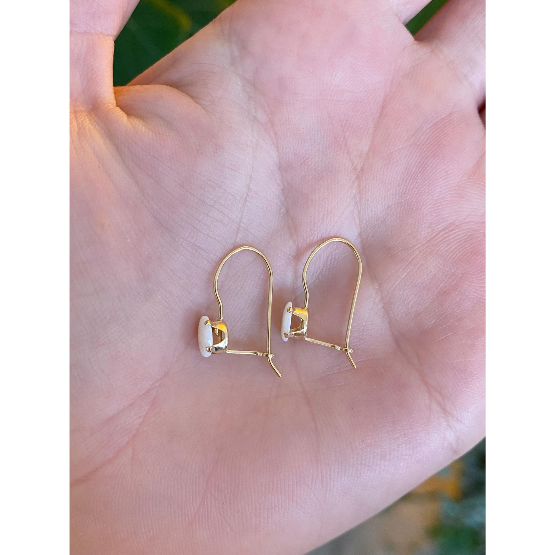 Vintage Solid 14k Yellow Gold Opal Drop Earrings