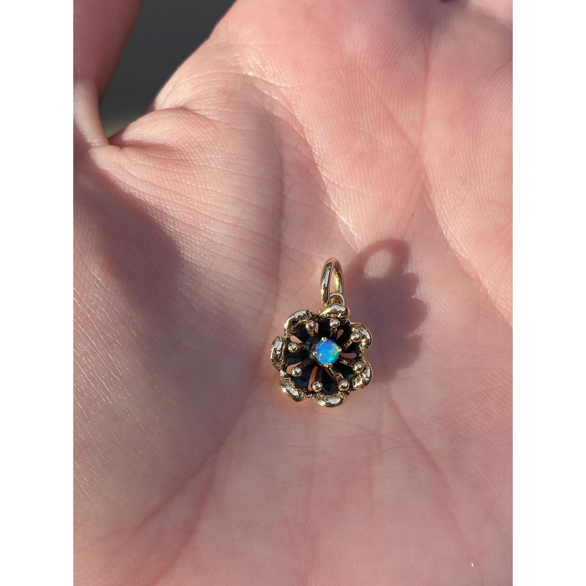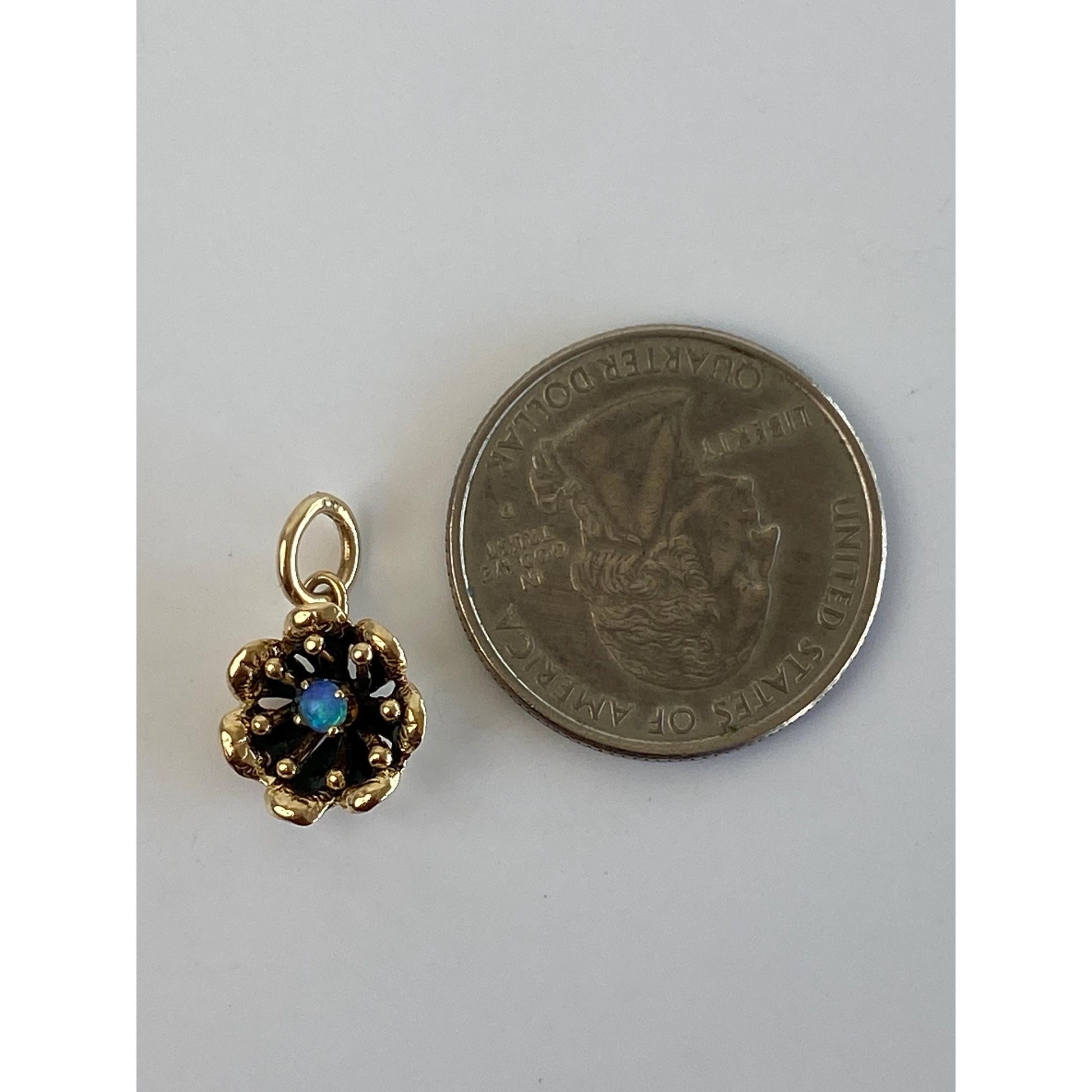 Vintage Solid 14k Yellow Gold Opal Flower Charm