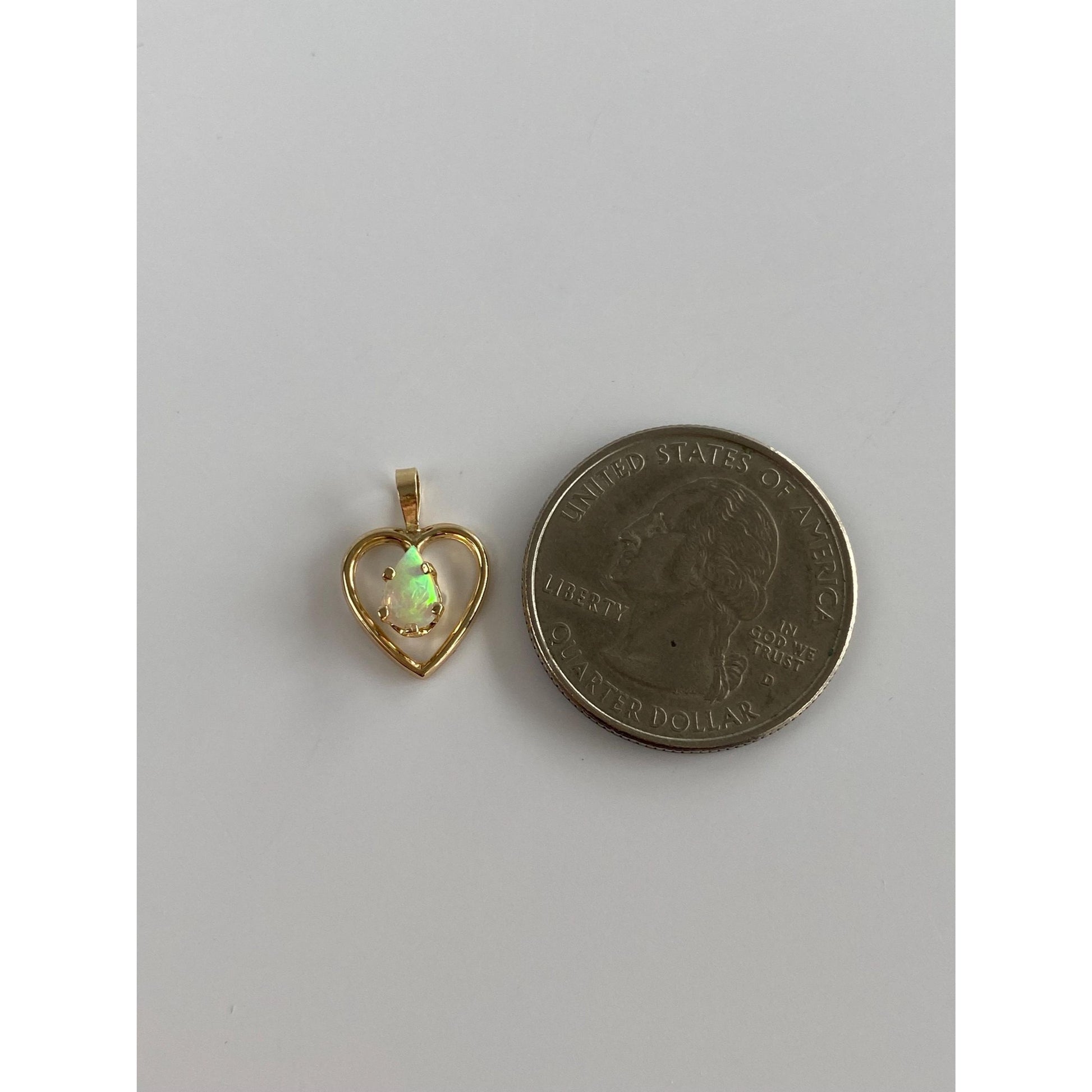 Vintage Solid 14k Yellow Gold Opal Heart Charm