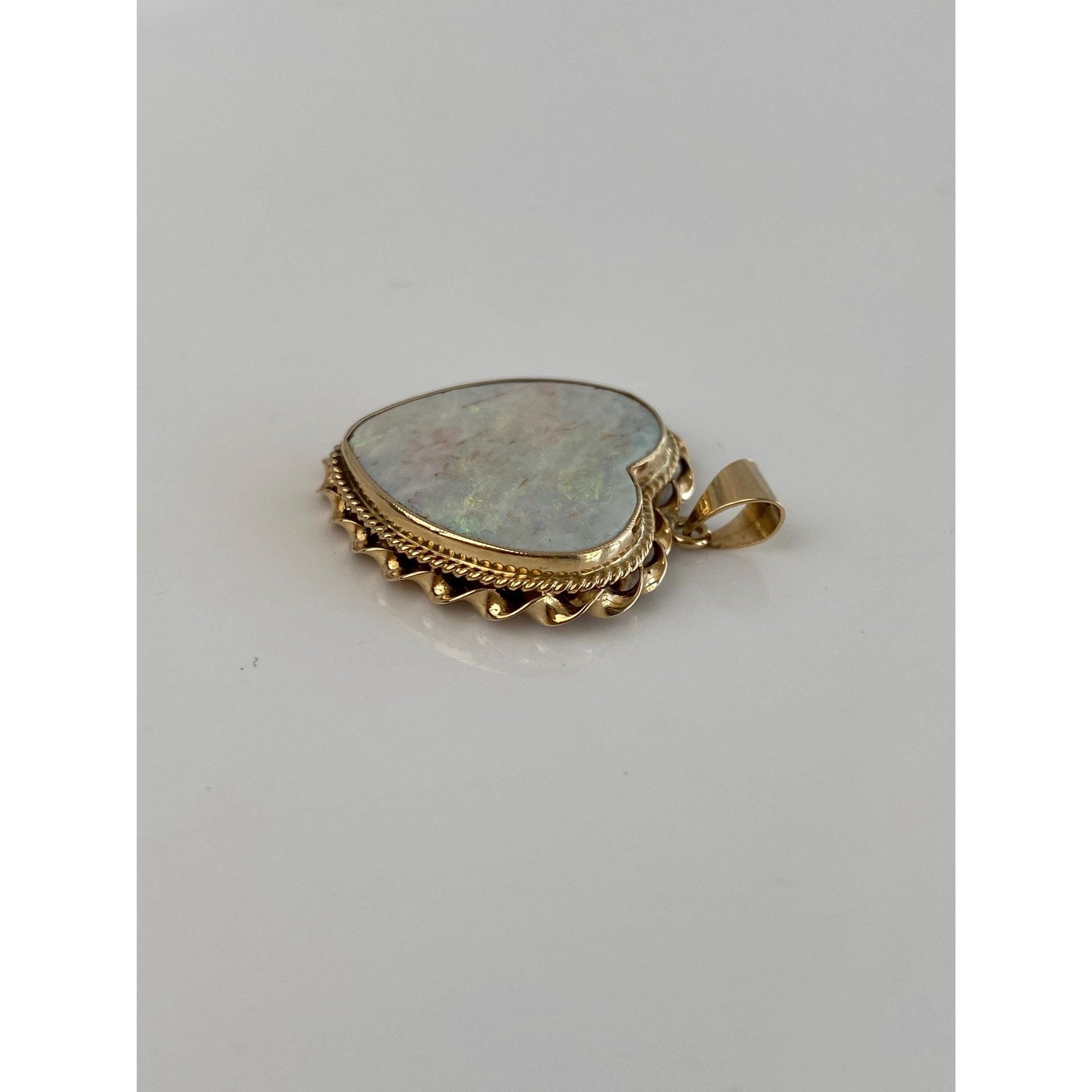 Vintage Solid 14k Yellow Gold Opal Heart Charm