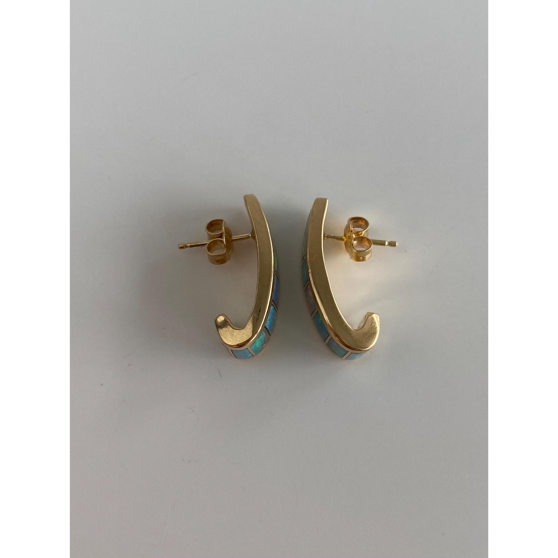 Vintage Solid 14k Yellow Gold Opal Inlay Drop Earrings