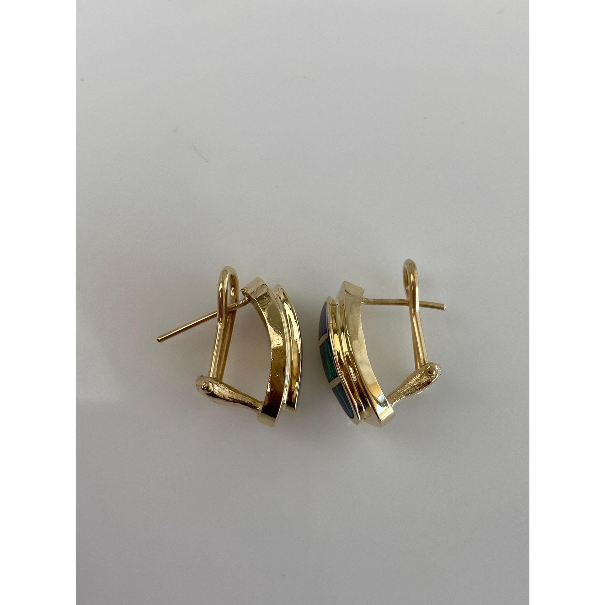 Vintage Solid 14k Yellow Gold Opal Inlay Drop Earrings