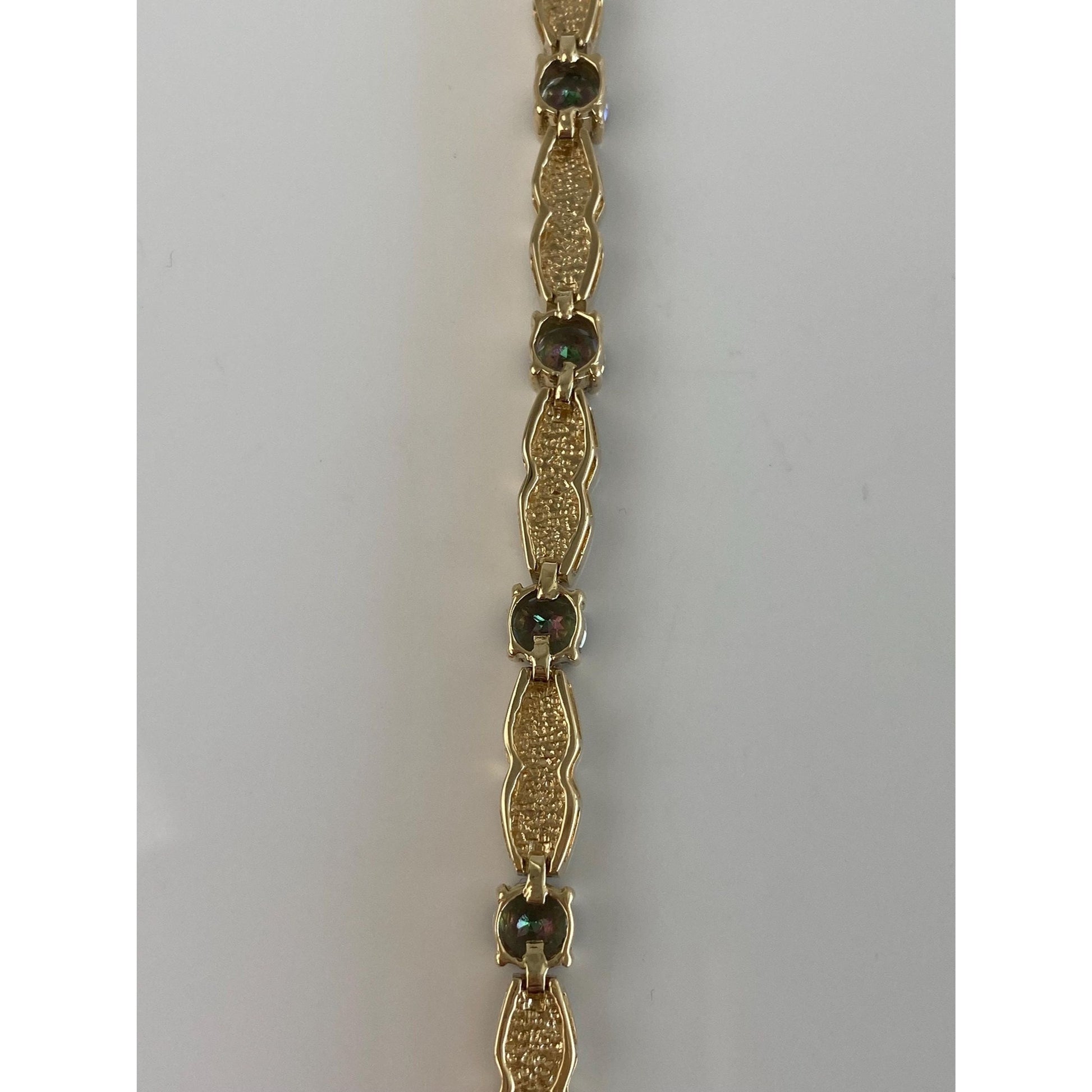 Vintage Solid 14k Yellow Gold Opal Inlay Mystic Topaz Link Bracelet - 8 inches