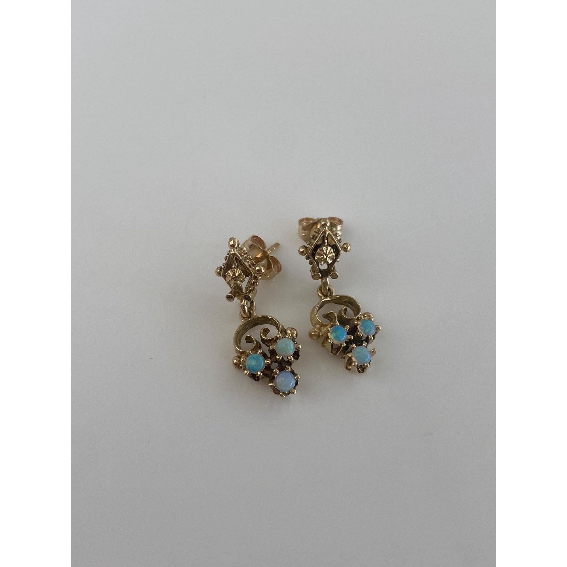 Vintage Solid 14k Yellow Gold Opal Ornate Dangle Stud Earrings