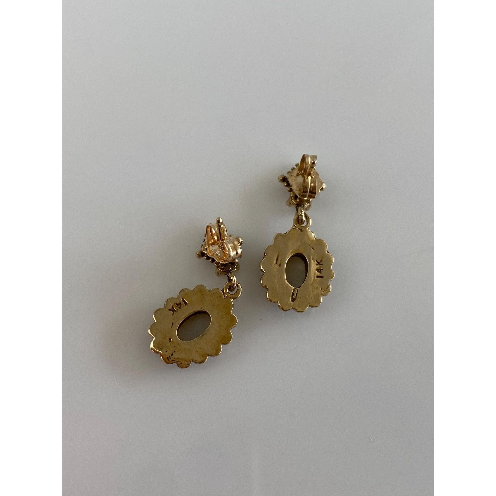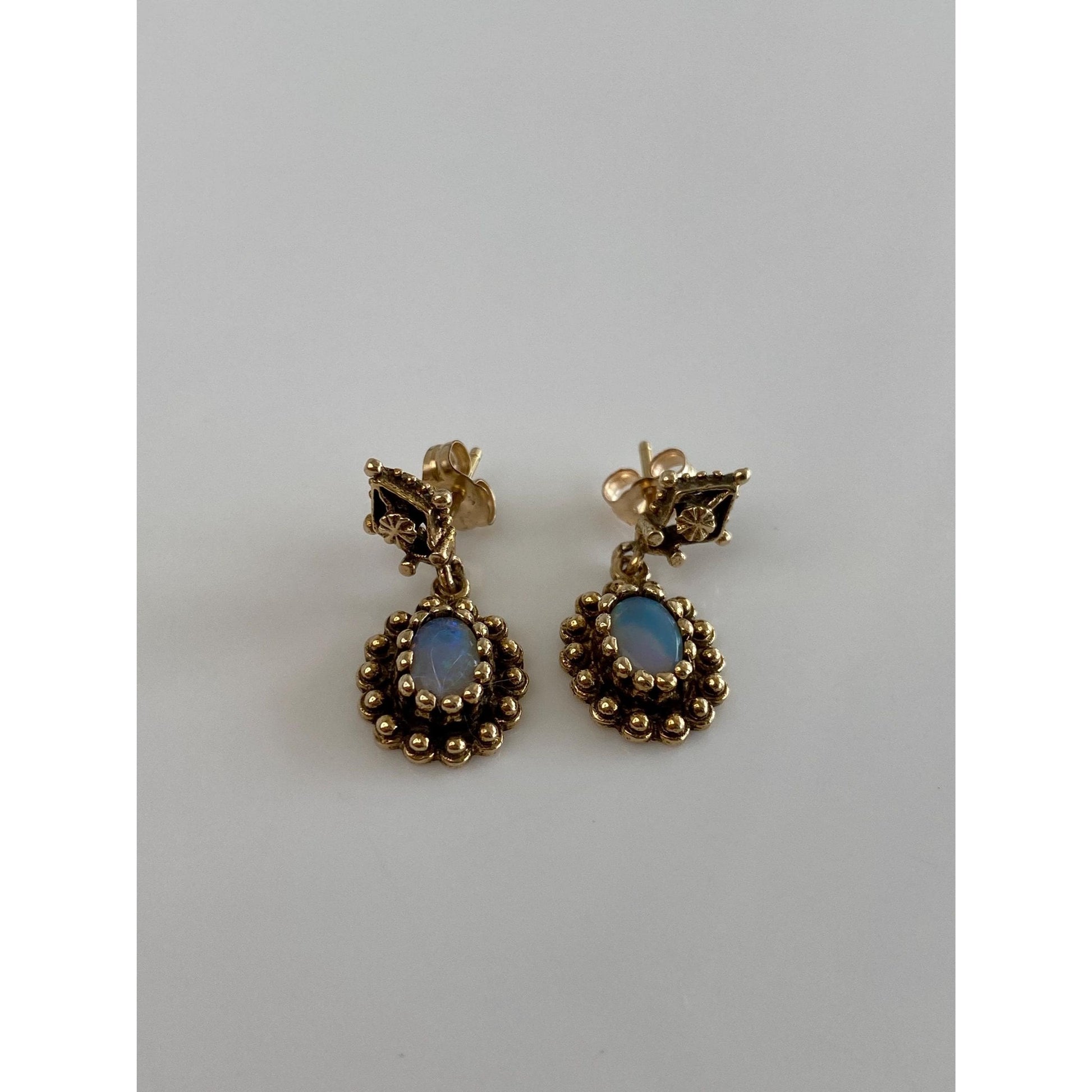 Vintage Solid 14k Yellow Gold Opal Ornate Dangle Stud Earrings